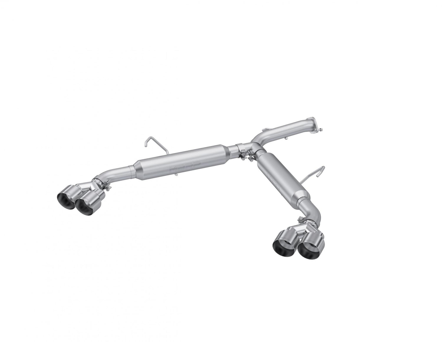 Aluminized Steel Axle-Back Exhaust System dual split quad rear exit with mirror polished exhaust tips.