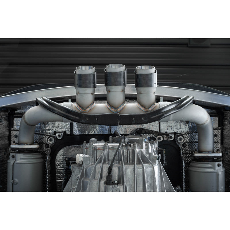 Sound and Appearance: Get the sound you want, this cat-back exhaust enhances your vehicles sound profile, creating an aggressive sportscar tone that will make you feel ready for the track. Lastly, we complete the look of this system with three attractive and eye-catching carbon fiber tips.