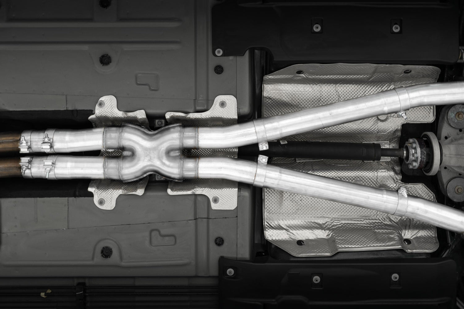 T304 Stainless Steel 3 Inch Cat-Back Dual Split Rear Exit with Quad Carbon Fiber Tips, Race Version