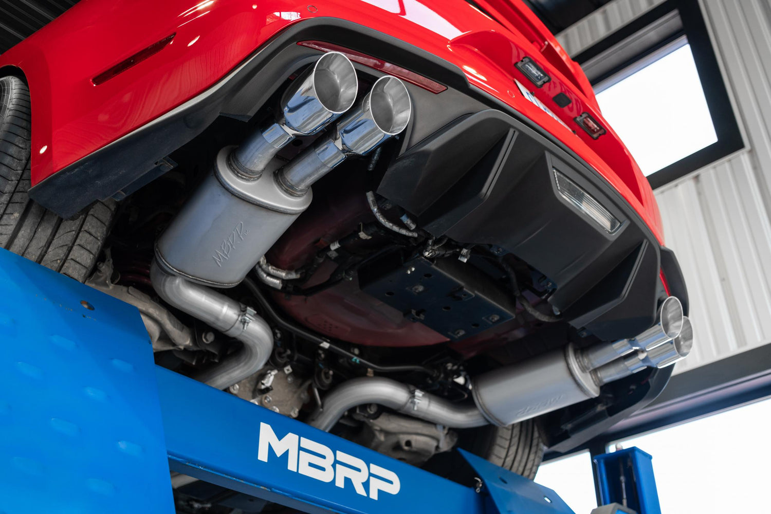 MBRP S7205AL - 3 Inch Cat Back Exhaust System For 18-23 Ford Mustang GT 5.0L With Quad 4 Inch Dual Wall Tips Street Version Aluminized Steel