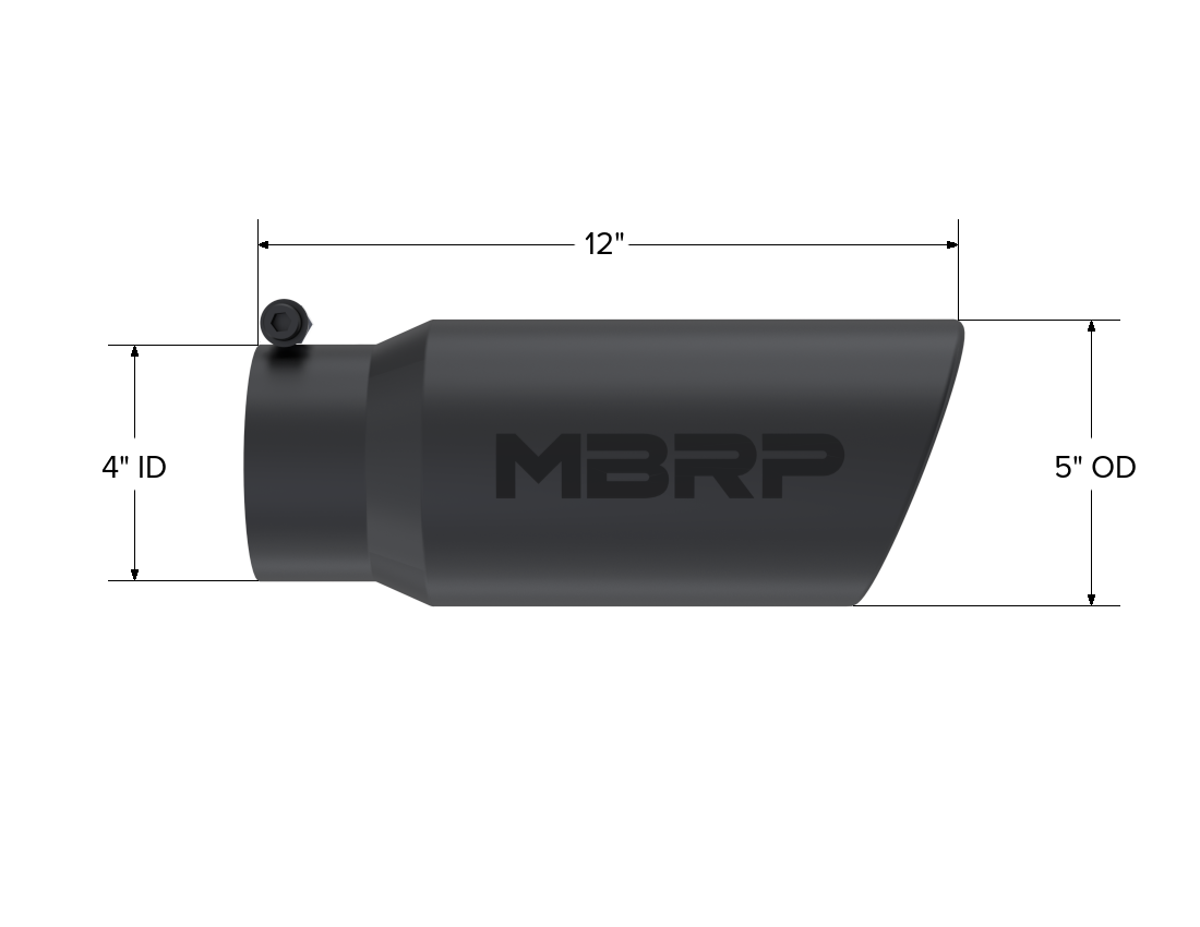 MBRP T5051BLK - Exhaust Tip 5 Inch O.D. Angled Rolled End 4 Inch Inlet 12 Inch Length-Black Finish