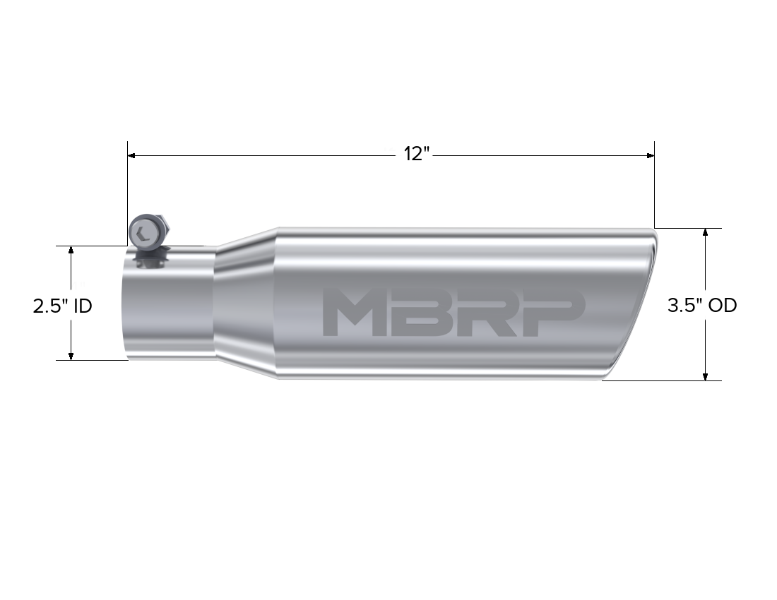 MBRP T5113 - Exhaust Tip 3 1/2 Inch O.D. Angled Rolled End 2 1/2 Inch Inlet 12 Inch Length T304 Stainless Steel