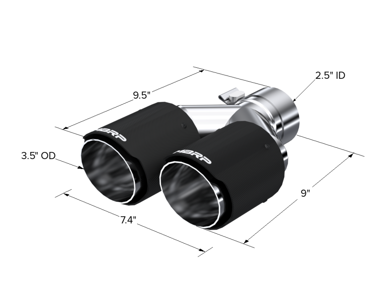MBRP T5170CF - Carbon Fiber Tip 2.5 Inch ID Dual 3.5 Inch OD Out 9.45 Inch Length Dual Wall
