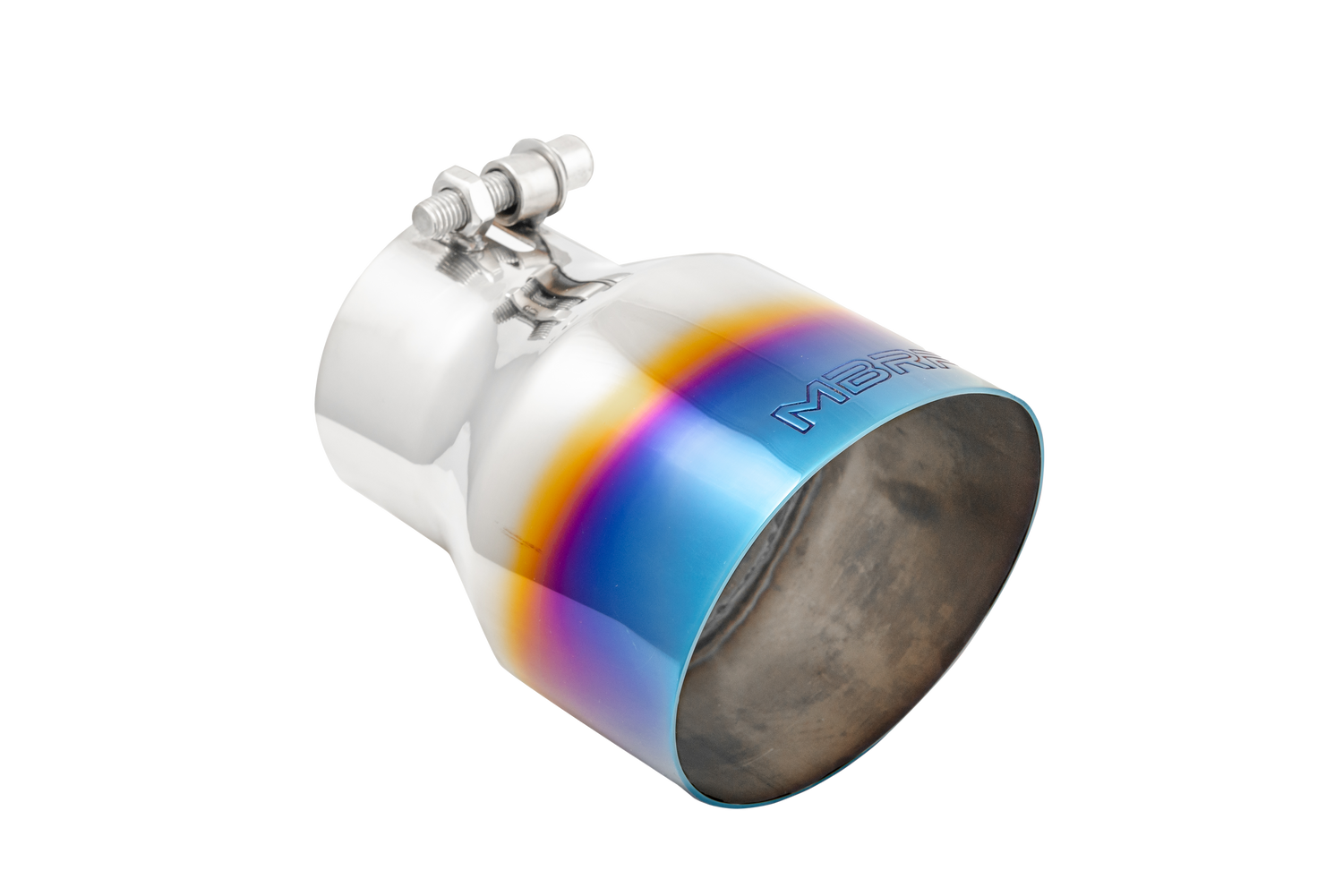 The exhaust tip is the crowning touch to your performance exhaust. It is your opportunity to really show off your personal style. That's why MBRP offers such a wide assortment of high quality, bolt on tips, because everybody has their own idea of style. MBRP offers T304 polished stainless, Black coated, Burnt End and Carbon Fiber tip options in various sizes. The tips are universal fit so be sure to measure your tail pipes outside diameter and match it to the MBRP tip INLET diameter before ordering.