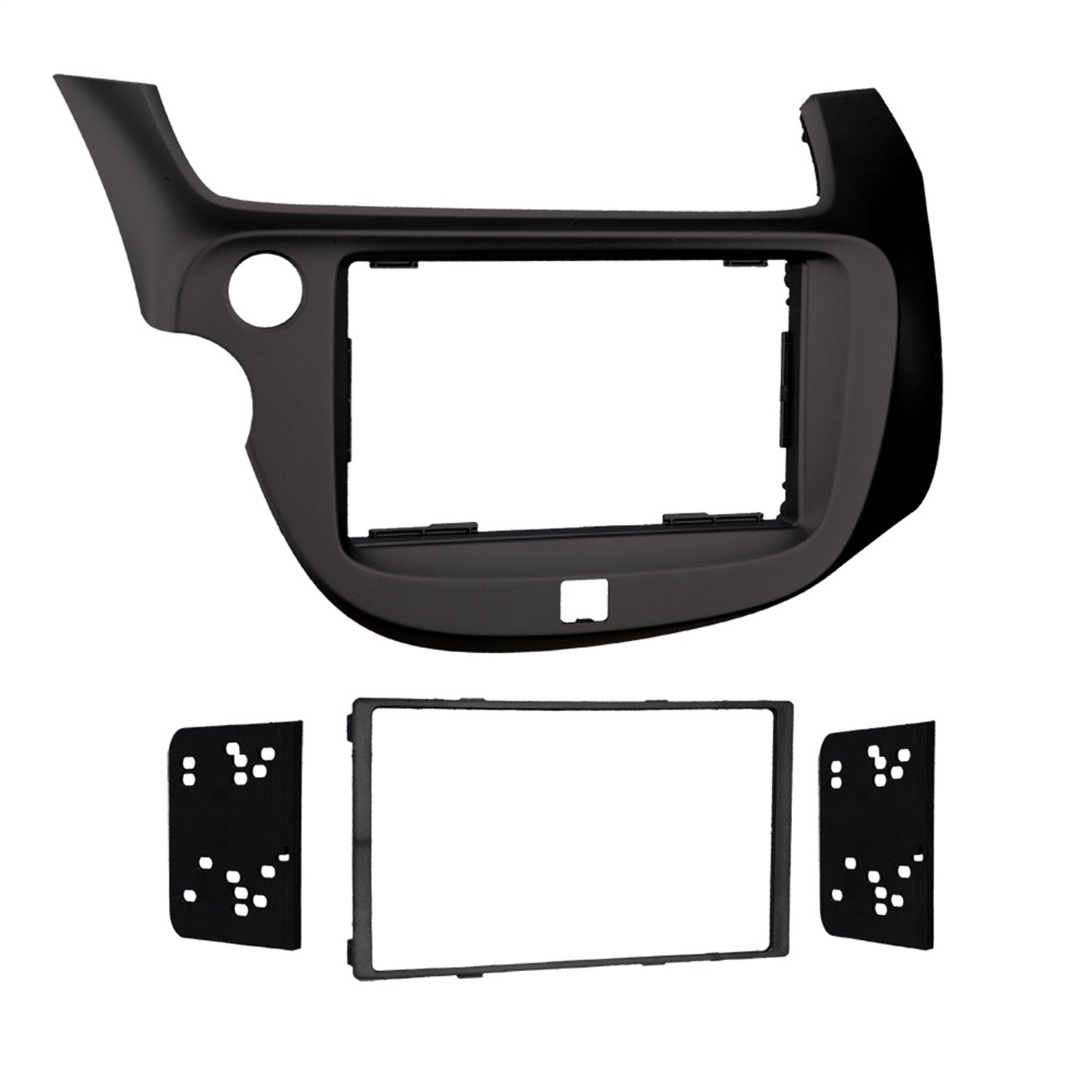 Radio installation kit used when replacing the OEM radio with an aftermarket radio. This kit has provision for a double DIN radio , painted gloss charcoal for a factory finish.