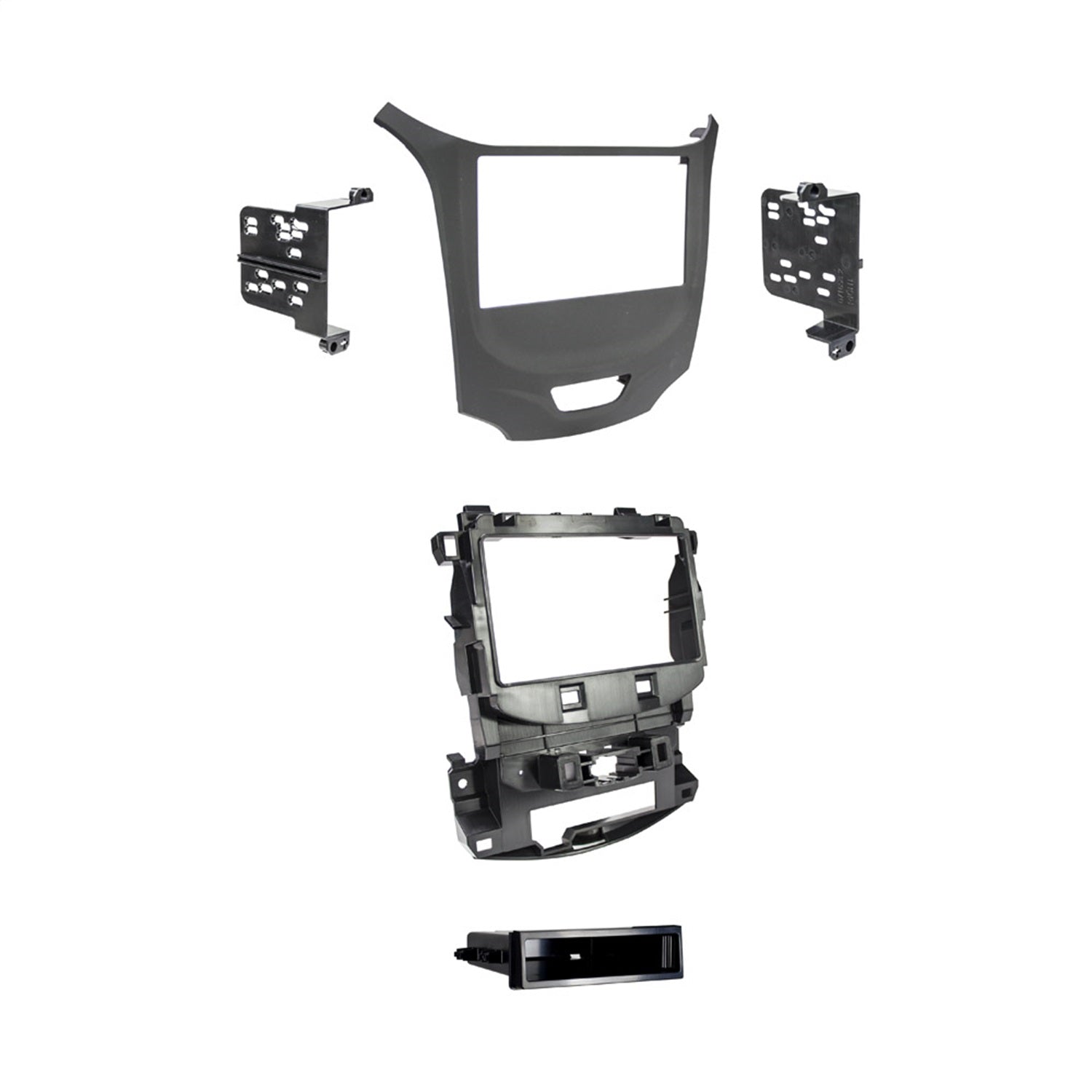 Radio installation kit used when replacing the OEM radio with an aftermarket radio. This kit is contoured to match the OEM dash and is in a matte black finish. Kit will fit a DIN radio in Chevrolet Cruze 2016-2019.