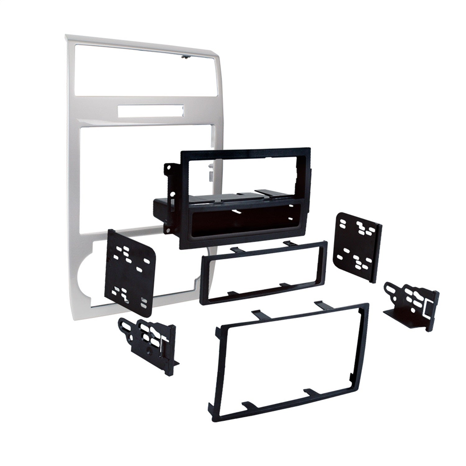 Custom Fit Mounting Kit; ISO DIN w/Pocket Or Double DIN Radio Provision; Incl.: Radio Housing Trim Panel/Radio Housing/Brackets/Trim Plate/DDIN Trim Plate/Pocket; Silver;