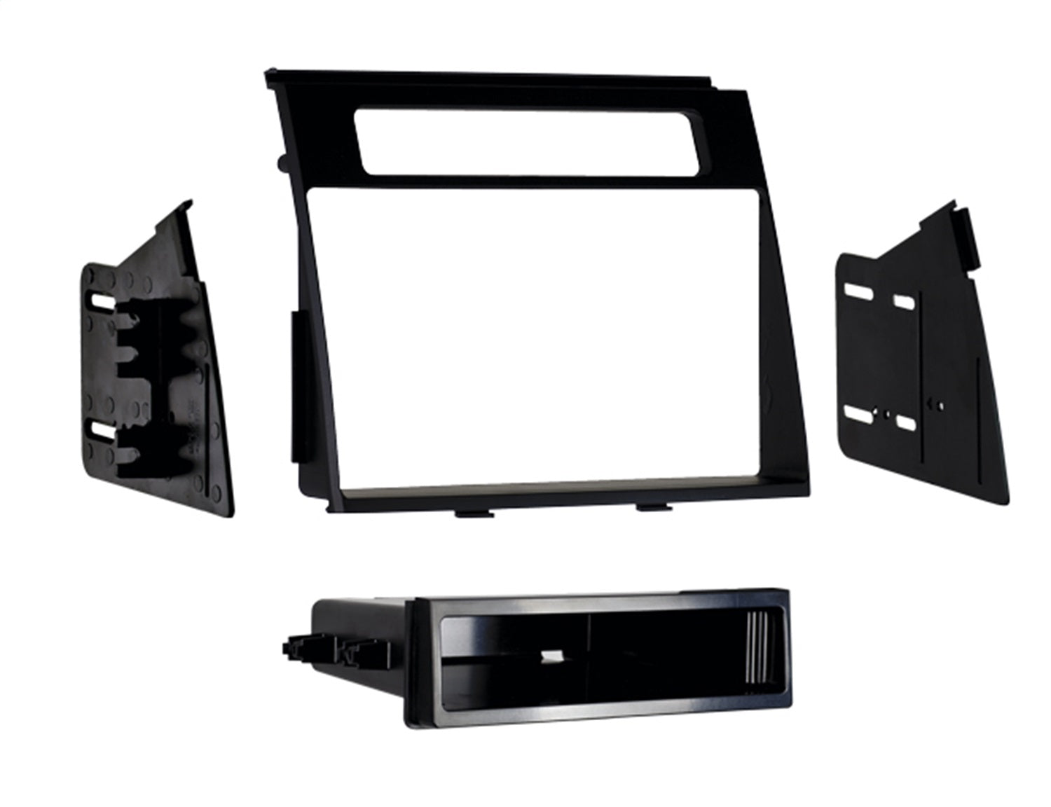 Radio installation kit used when replacing the OEM radio with an aftermarket radio. This kit has provision for a double DIN radio , painted gloss charcoal for a factory finish.