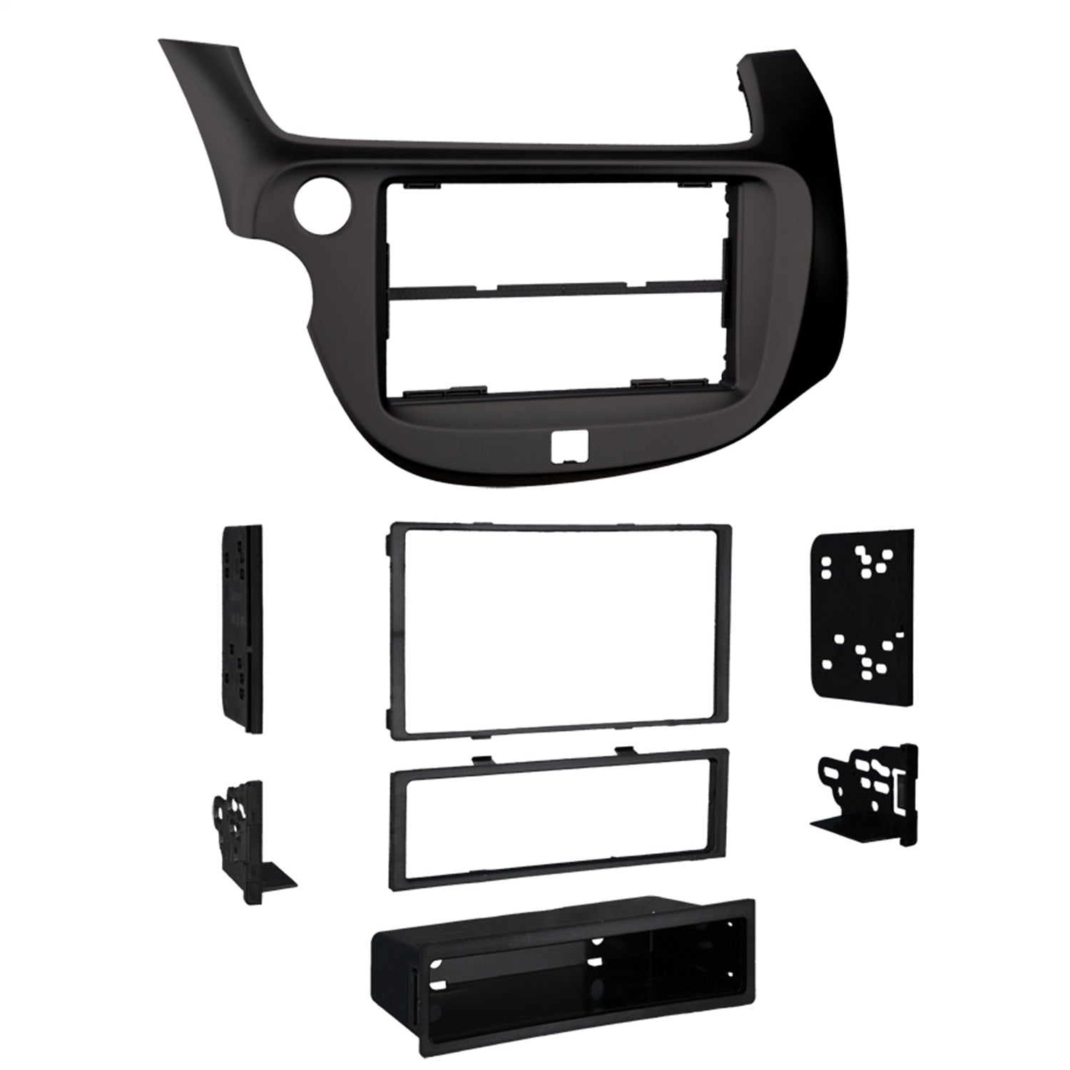 Radio installation kit used when replacing the OEM radio with an aftermarket radio. This kit has provision for a double DIN radio , painted gloss charcoal for a factory finish.