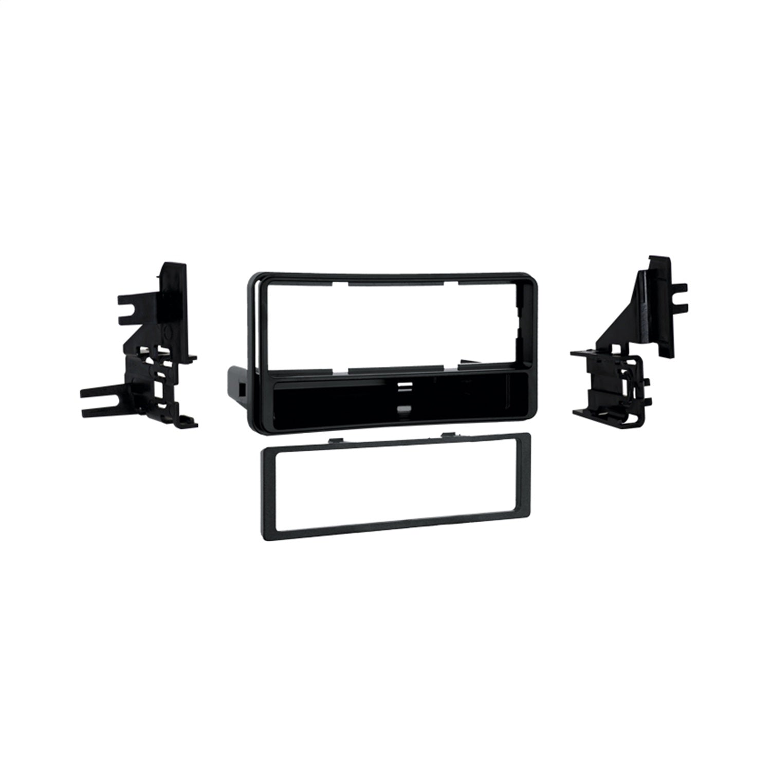 Radio installation kit used when replacing the OEM radio with an aftermarket radio. This kit has provision for a double DIN radio , painted gloss charcoal for a factory finish.