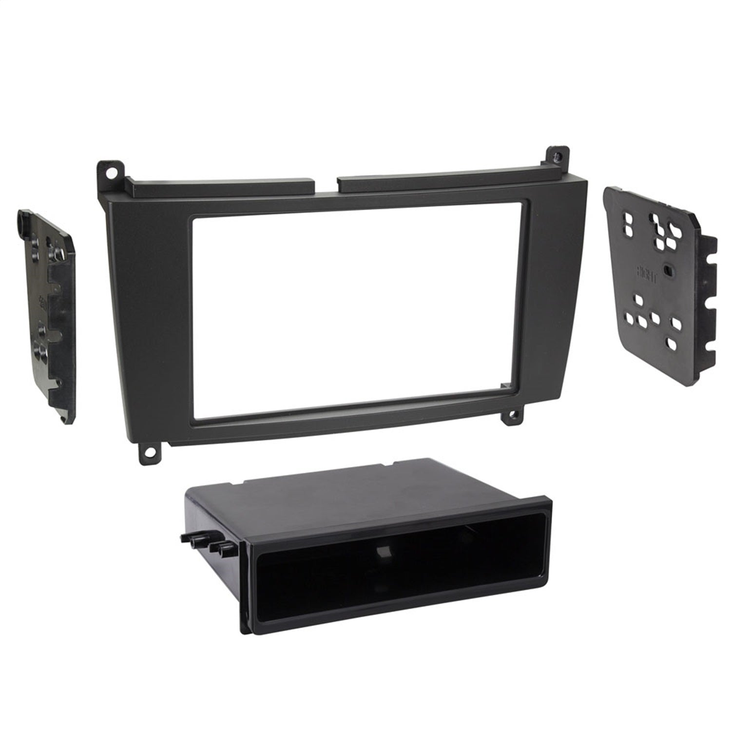 Radio installation kit used when replacing the OEM radio with an aftermarket radio. This kit is contoured to match the OEM dash. Kit will fit a DIN or double DIN radio in Mercedes Benz CLK Class 2005-2009.