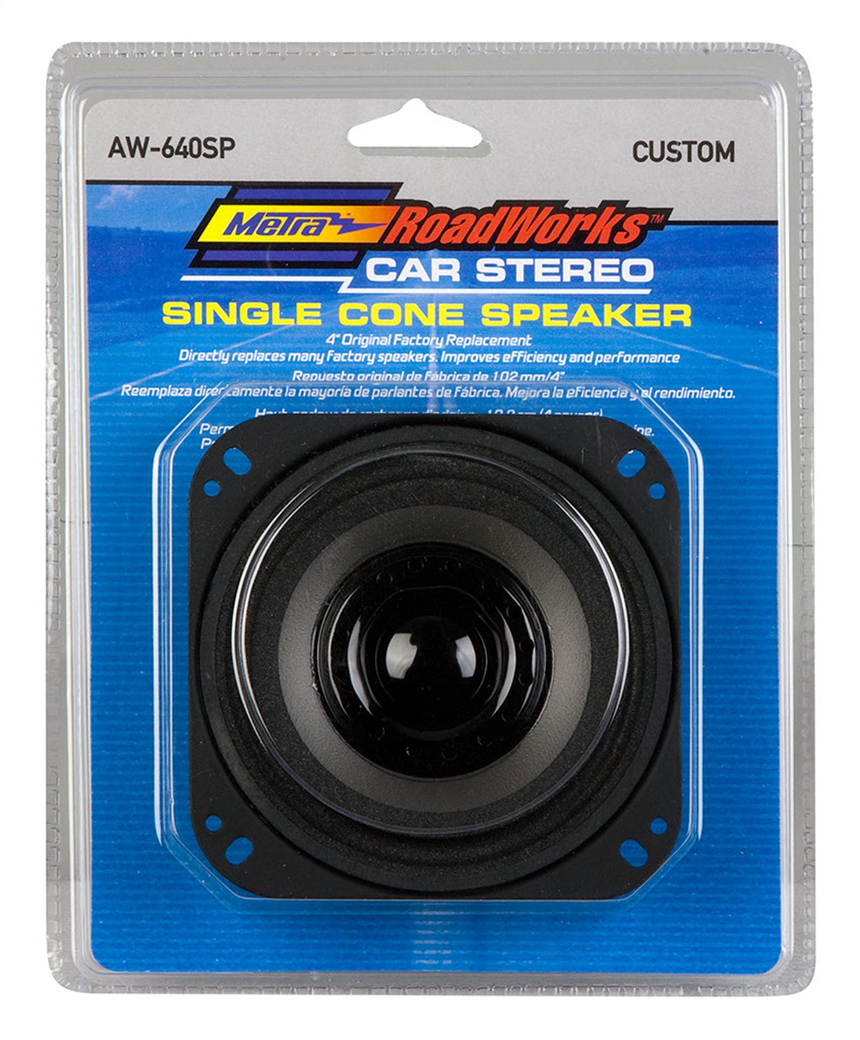 Aftermarket 4 in. replacement speaker. Used when the OEM speaker is blown or no longer working. Fist into OEM speaker location.
