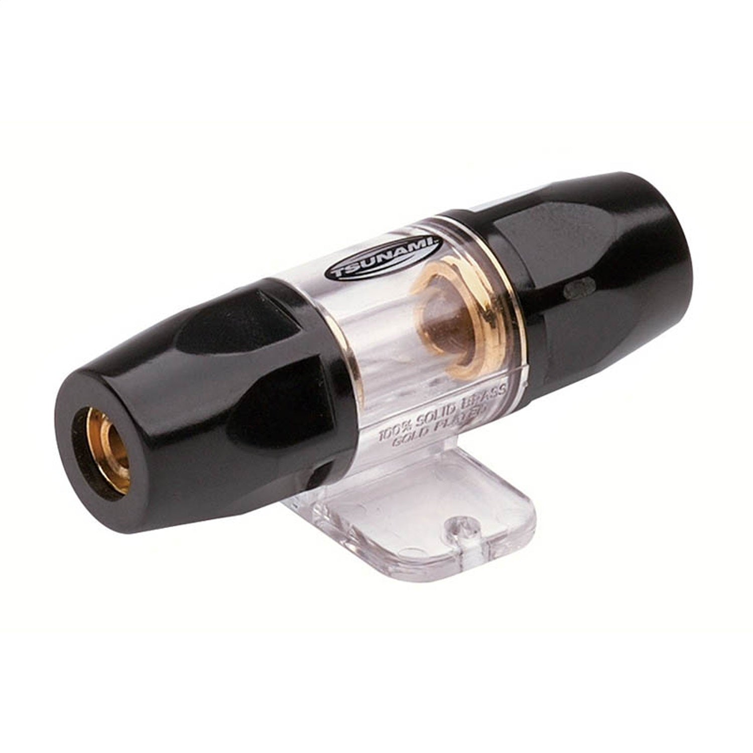 Metra Electronics FHAGU - AGU Fuse Holder; 4-Gauge Or 8-Gauge In/Out; Nickle; Black Caps Solid Brass Terminals; Retail Pack;