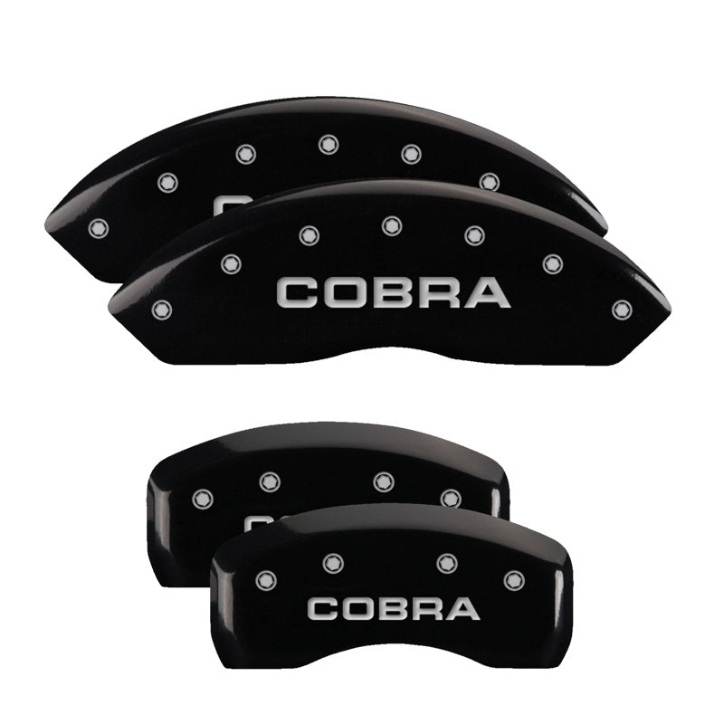 MGP 10017SCOBBK - 4 Caliper Covers Engraved Front & Rear Cobra Black finish silver ch