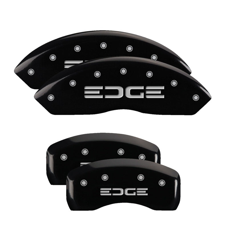 Set of 4 caliper covers, Engraved Front and Rear: Edge, Black powder coat finish, silver characters.