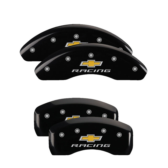 MGP 14247SBRCBK - 4 Caliper Covers Engraved F & R Chevy Racing Black Finish Silver Char 2019 Chevrolet Equinox