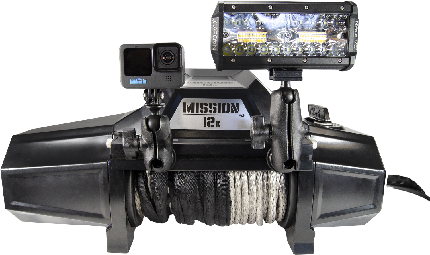 Versatile rail mount that fits across the tie plate of Mission Series winches to securely mount multiple accessories