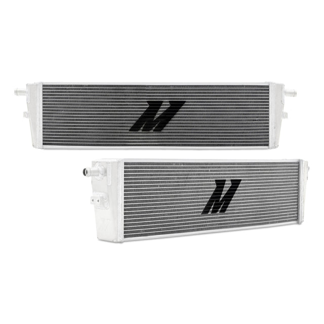 There are some aspects of a build where corners can be cut, but your charge-air cooling system shouldn't be one of them. Big turbochargers make big power, and big power often results in high temperatures. Within the last decade, we've seen many turbocharged vehicles transitioning to liquid-to-air intercooling systems. The air-to-water heat exchanger plays a vital role in these systems by reducing coolant temperatures before entering the intercooler. If you're planning a forced induction build and need a charge-air cooling solution, Mishimoto's new air-to-water heat exchangers are an ideal choice. Mishimoto has designed four universal heat exchangers to support any build up to 1,500 hp, each precisely engineered for optimal flow and heat dissipation to meet your horsepower goals. Our heat exchanger options include multiple core sizes in single or dual pass configurations and your choice of two or three-row cores. In addition, the Mishimoto Universal Air-to-Water Heat Exchangers feature all-aluminum TIG-welded construction, making them extremely robust. For ease of installation, we've included half-inch thick threaded mounting bosses on each end tank. Mishimoto offers a complete line of air-to-water products along with our selection of air-to-water heat exchangers , making us your one-stop shop for building the perfect air-to-water intercooler system. As with all our products, this Mishimoto Universal Air-to-Water Heat Exchanger includes the signature Mishimoto Lifetime Warranty.