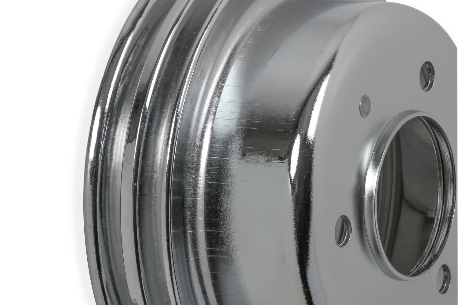 Chrome Plated Steel Crankshaft Pulley; Double Groove; Small Block Ford;