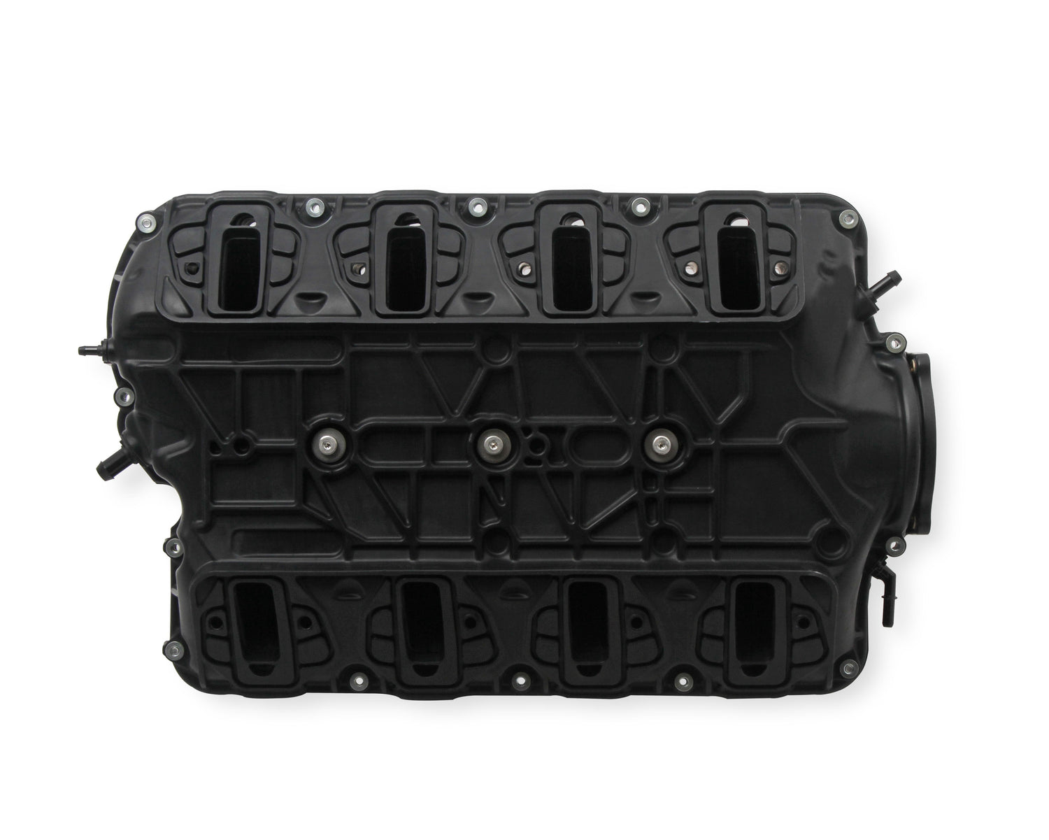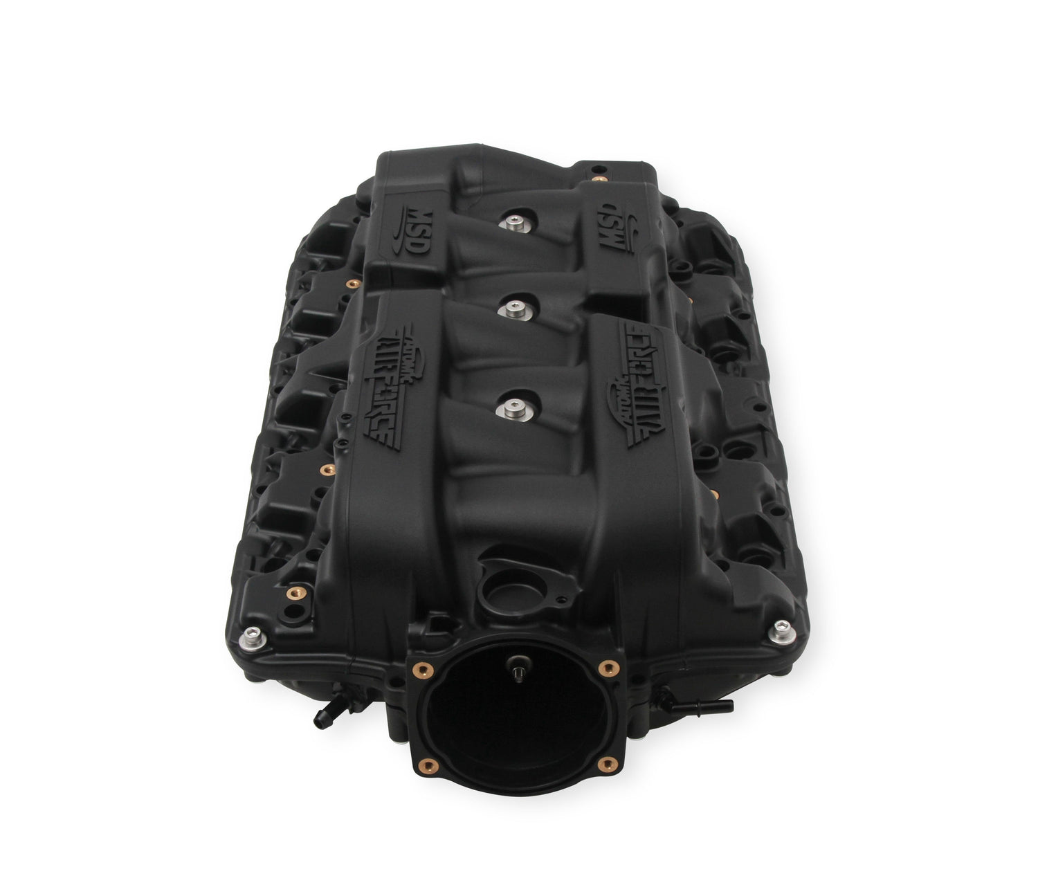 The MSD Atomic AirForce intake manifold delivers improved airflow and distribution to improve the performance of stock and modified engines. The unique bell-mouthed runner entrances maximize airflow and minimize shrouding - all while optimizing the available plenum volume for an unobstructed flow path over opposing runners. The polymer molded 2-piece design allows for easy access to the runners for porting. Atomic AirForce accepts an OEM or 103mm throttle body as well as stock or aftermarket fuel rails* including MSD's Atomic LS EFI system. The intake bolts on and is supplied with new gaskets and hardware for a direct bolt-on package. *Note: Use of aftermarket rails may require the use of customer-supplied spacers and hardware.