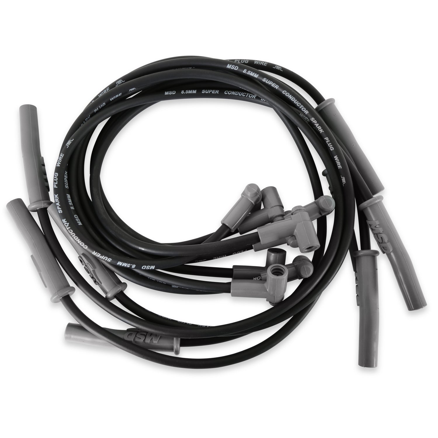 Spark Plug Wire Set - Super Conductor - Spiral Core - 8.5 mm - Black - Straight Plug Boots - HEI Style Terminal - Various GM - Kit