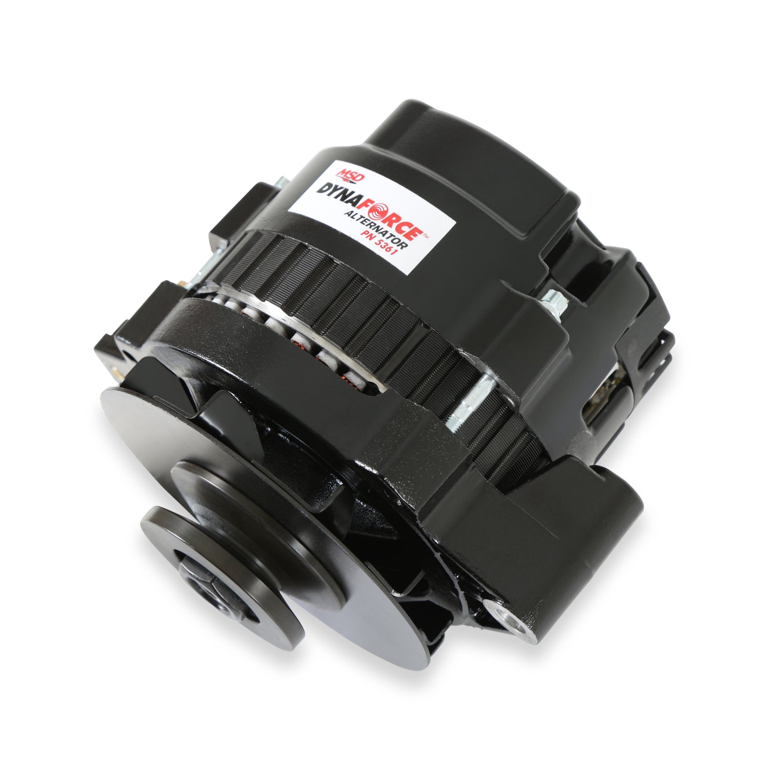 Whether you need a high output alternator to power your muscle car, street rod or touring machine, MSD has you covered with the DynaForce Alternator. For the street, MSD offers a 120 or 160 amp one-wire alternator. Not only are they designed for extreme output at higher rpm, but MSD balances the current output to keep your electronic components up to speed during idle and lower rpm operation as well. Both the 120 and 160 Amp lternators feature one-wire installation to keep things clean, easy and effective. The charge post of the alternators is moved to the side of the housing to allow for improved clearance to the block, plus a pulley baffle is included to ensure there is never any fan-to-belt issues (common at high rpm on lesser alternators). The housings are available in four finishes including a natural cast for stock looks, a show quality chrome, black for subtle appearance and a great new satin finish for a smooth finish.