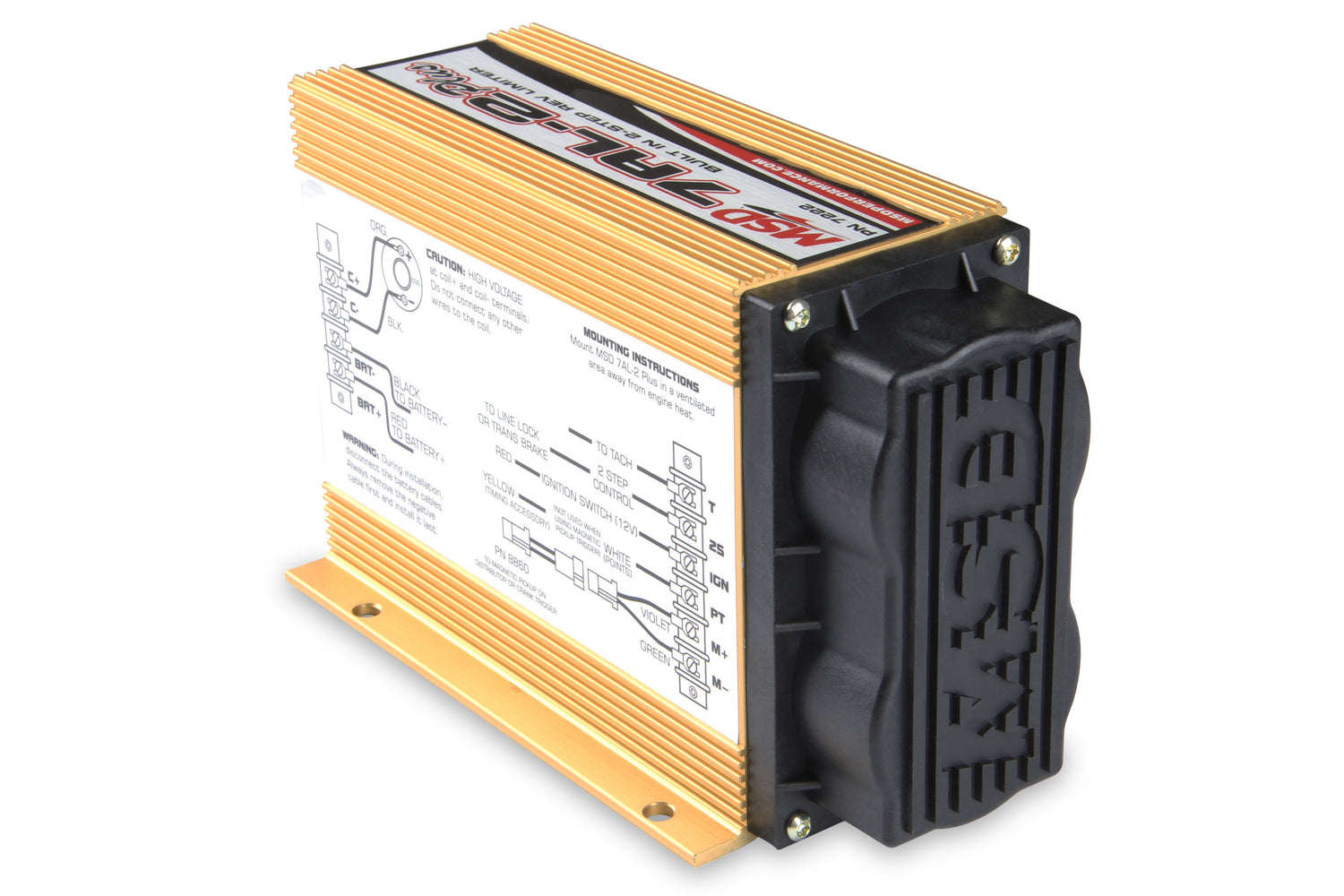 Youll recognize the 7AL-2 Plus Ignition Control, as its predecessor is the most popular ignition control used in drag racing. The Plus model updates the original 7AL-2 with improved internal components plus our engineers added a 2-Step Rev Control and a useful diagnostic LED. Racers will be happy to see that the updated components up the voltage output and spark energy! Over 40 Percent more spark energy in fact! Visually, youll notice the two terminal strips that allow for easier wiring in your race car. The LED over the power connections will come in handy for troubleshooting as it flashes only when the coil fires. That way you know that the coil, the trigger source and ignition are all functioning properly. The mounting pattern is the same as the 7AL-2 and is supplied with vibration mounts and a few rpm modules.