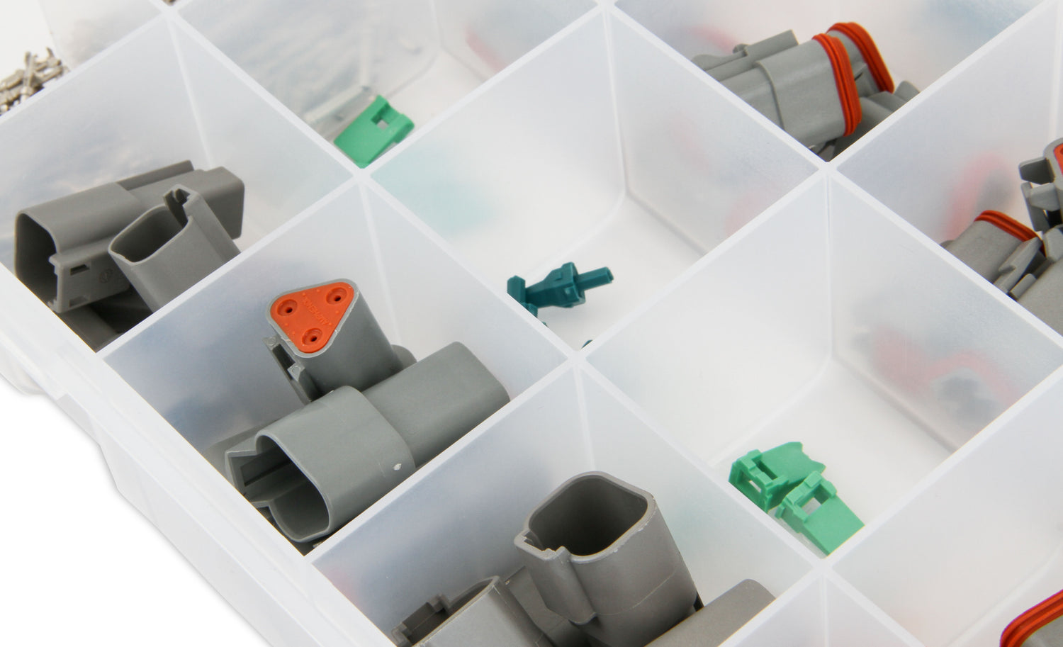 360 Piece Deutsch Connector Kit comes with 2, 3, 4, 6, 8 and 12 Pole Housings and Pins w/Seals