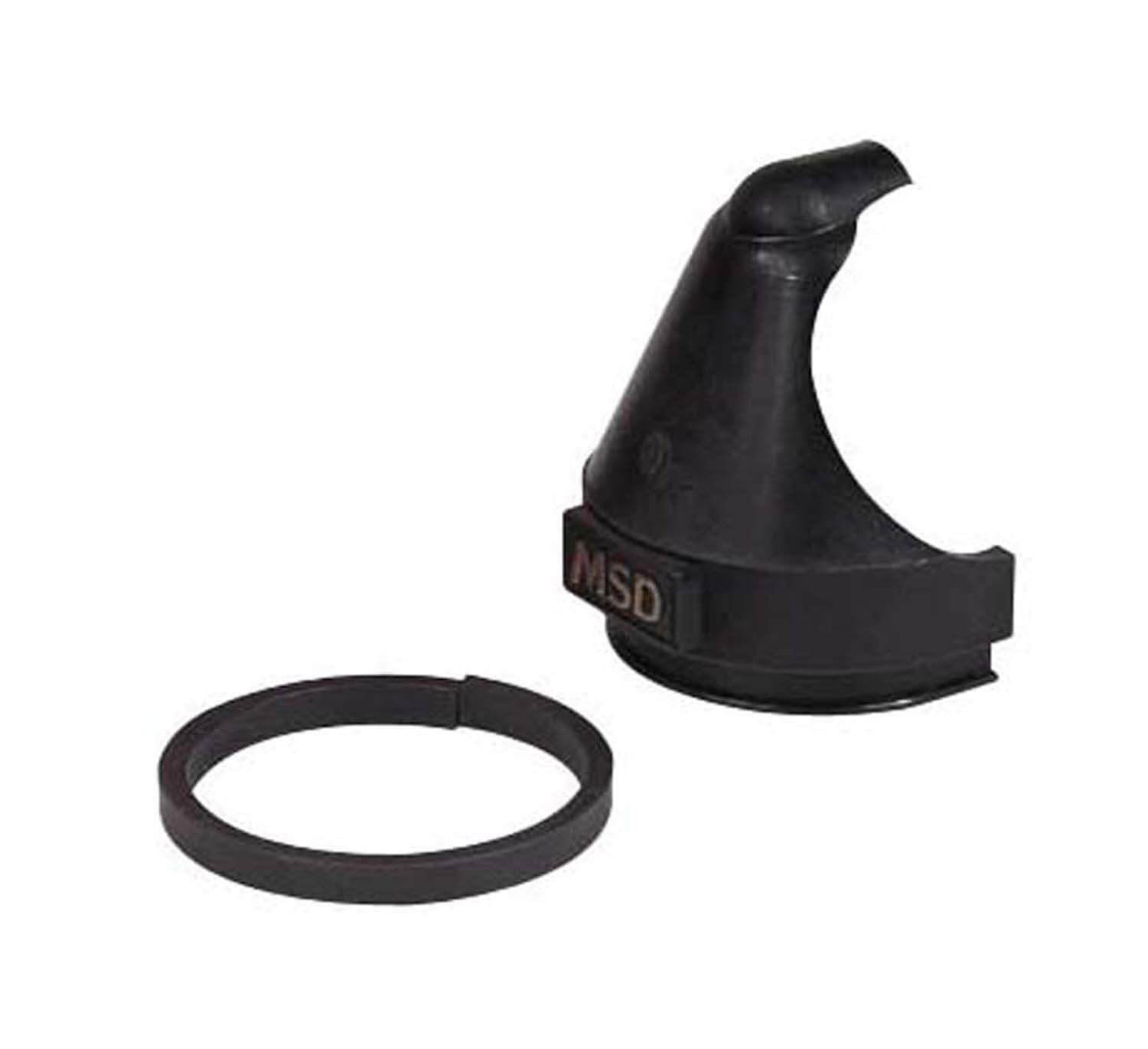 The MSD coil wire retainer holds the boot securely in the coil. The lower portion of the retainer snaps around the body of the coil under the flange and is held in place with a nylon tie wrap. The MSD coil wire retainer fits most of the MSD blaster coils (except the blaster 3) and most aftermarket canister type coils.