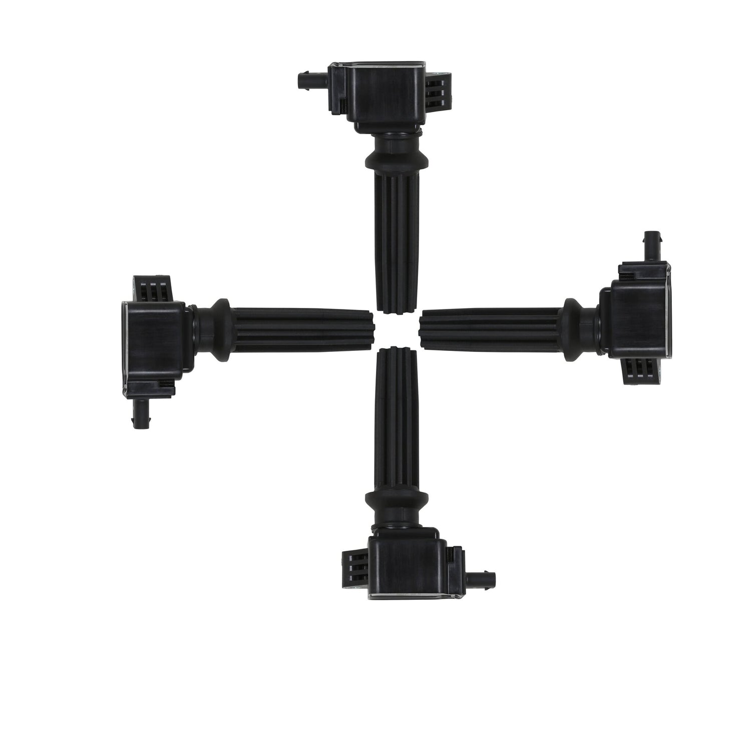 Ford EcoBoost Direct Ignition Coil Set; Direct Bolt-In Replacement; Square; 90 Degree Black Plug; Black; Set Of 4;