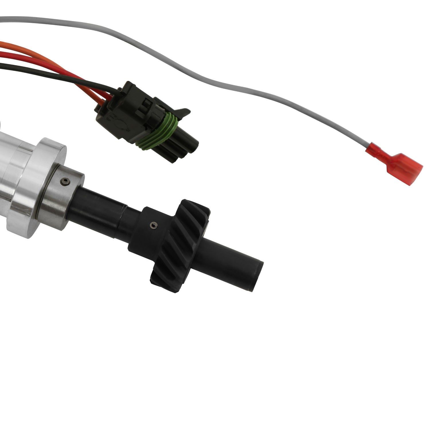 MSD's Ready-to-Run marine distributors are the perfect upgrade for boats that are relying on worn-out breaker points or weak ignition systems. These new distributors feature a powerful ignition module built into the billet aluminum housing. This module produces a stout inductive spark that will improve combustion of the fuel mixture for better drivability. Beneath the durable bolt-down, injection-molded cap, a maintenance-free magnetic pick-up produces accurate trigger signals while an oversized shaft is guided by a sealed ball bearing. An easy-to-adjust mechanical advance allows you to custom tailor a timing curve to match your application. The Ready-to-Run distributors are a breeze to install. Simply drop it in the engine and connect three wires and you're Ready-to-Run across the lake! Supplied with a cap, rotor, gear and Weathertight wiring harness.