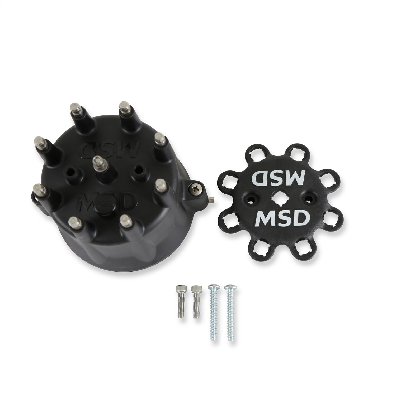 Replacement distributor cap for popular Chevy, Ford and Chrysler MSD distributors. This cap will also fit original GM points distributors.MSD molds our most popular V8 distributor caps in-house. These terminals offer improved locking connections and the Rynite material is extremely strong with excellent dielectric properties. Plus, most caps have an optional wire retainer that is supplied with these caps to lock the wires in place. If you are upgrading from a points socket style cap you will need to change your boots and terminals. MSD offers a set of nine as PN 8849.