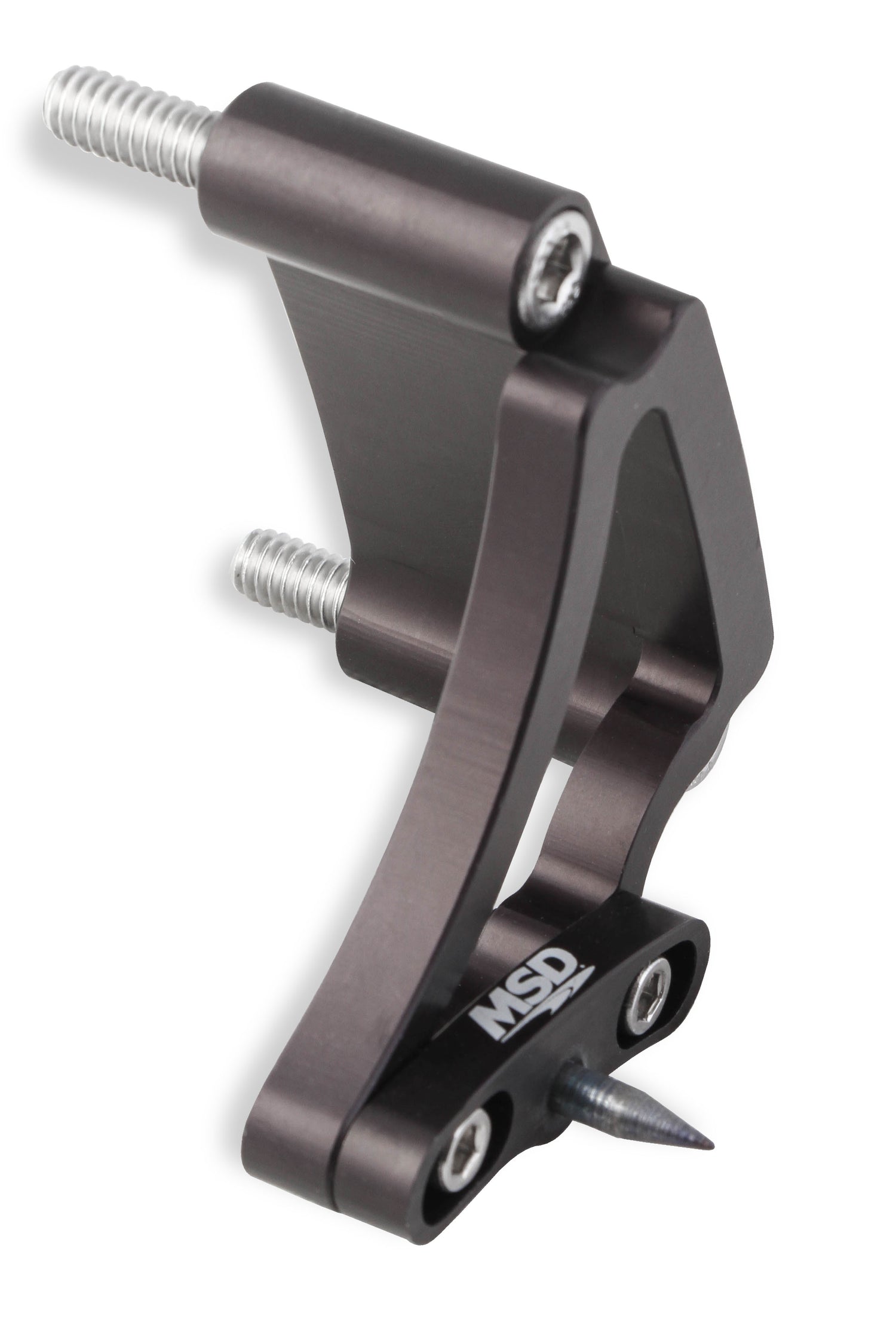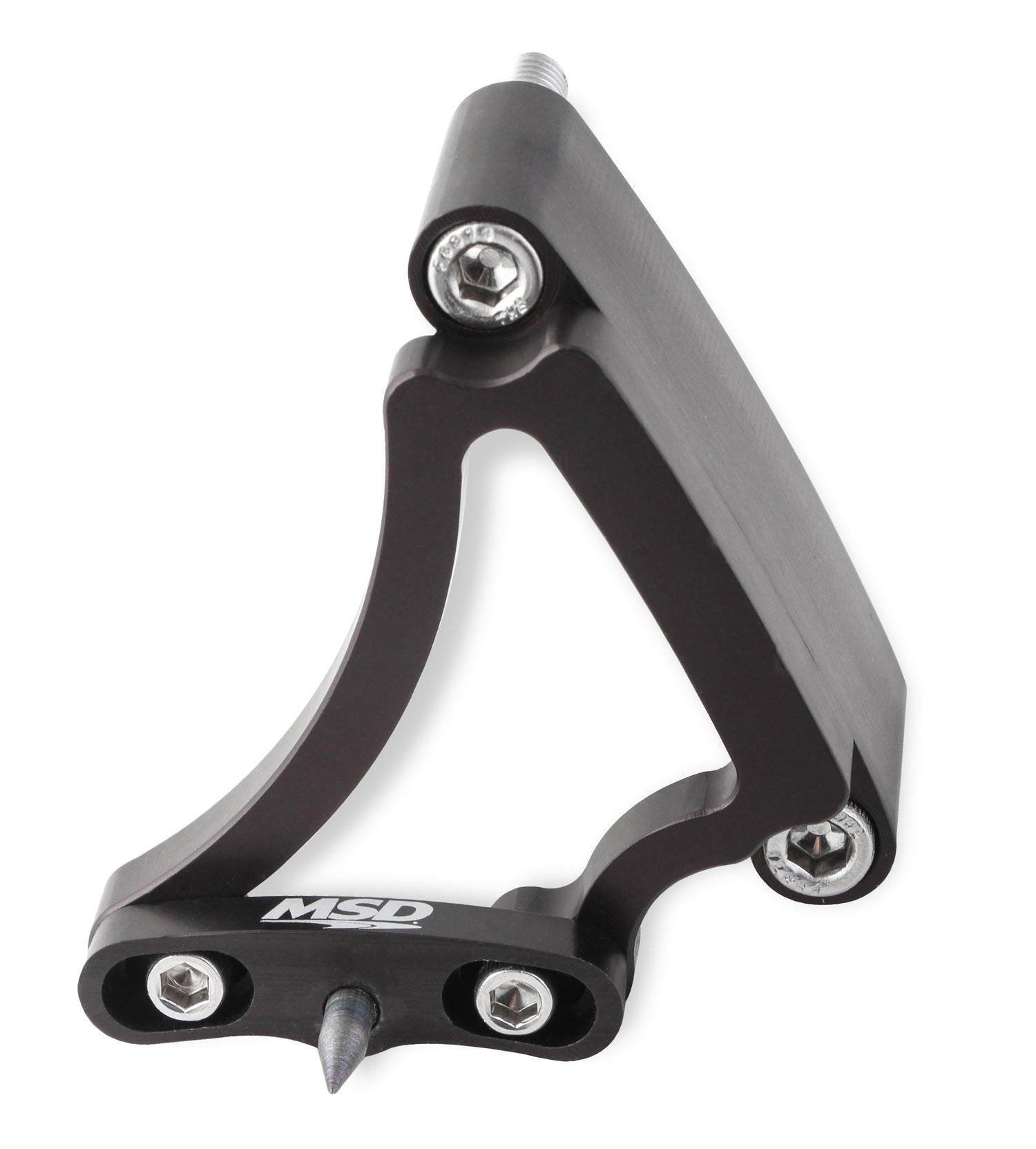 Complete your MSD ignition system with a precision adjustable timing pointer that is CNC-machined from 6061-T6 billet aluminum. Each pointer is fully machine-lightened for a great looking addition to any engine. The main body and adjustment assembly are black anodized for long-lasting corrosion protection. They are built to direct fit each application and various part numbers are available to fit multiple size balancers. MSD Timing Pointers are designed to work on Small Block Chevy, Big Block Chevy, and Small Block Ford engines and have a 4-degree range of movement for finding that precise timing location. Stainless steel hardware is included with each timing pointer.