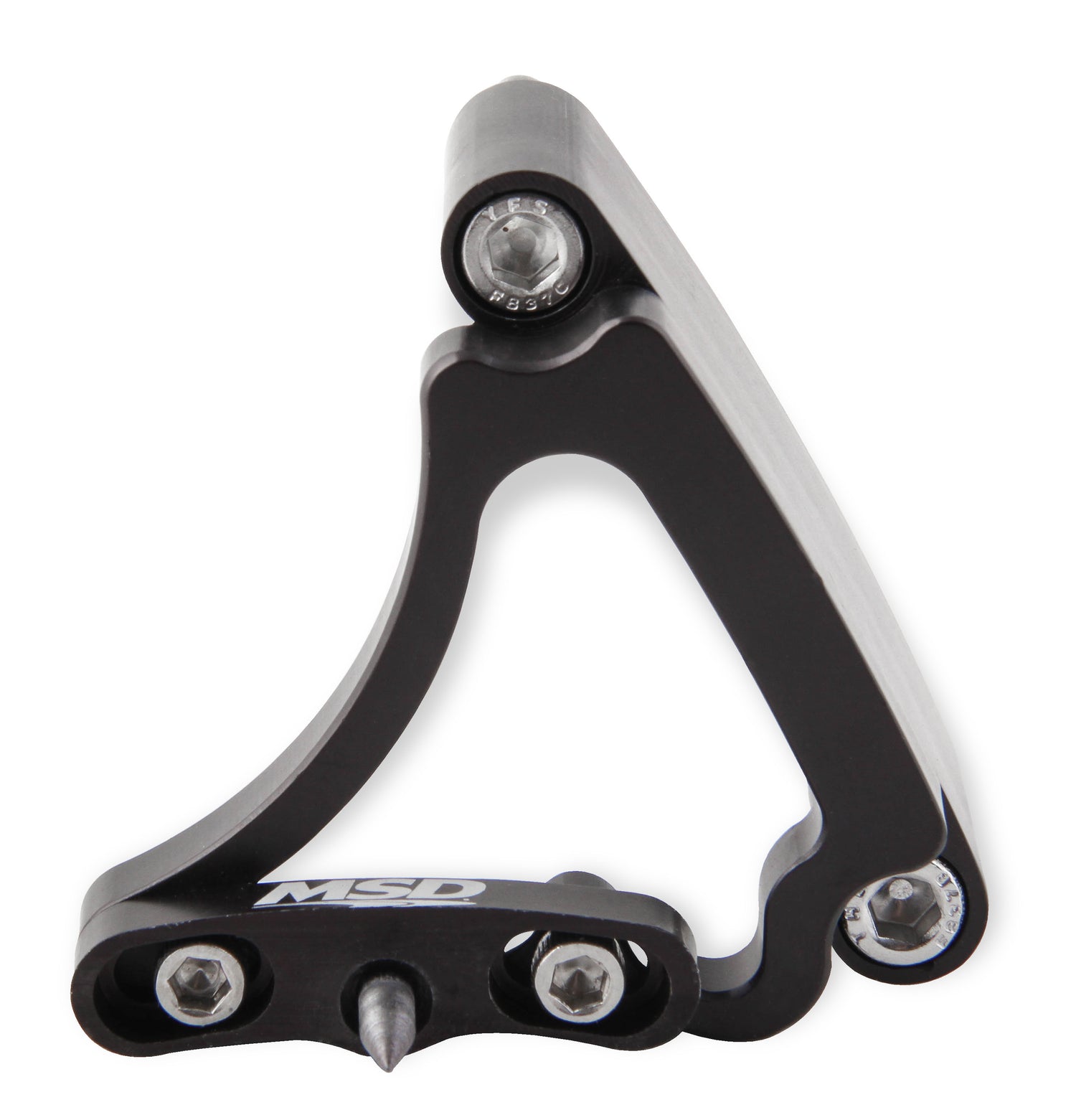 Complete your MSD ignition system with a precision adjustable timing pointer that is CNC-machined from 6061-T6 billet aluminum. Each pointer is fully machine-lightened for a great looking addition to any engine. The main body and adjustment assembly are black anodized for long-lasting corrosion protection. They are built to direct fit each application and various part numbers are available to fit multiple size balancers. MSD Timing Pointers are designed to work on Small Block Chevy, Big Block Chevy, and Small Block Ford engines and have a 4-degree range of movement for finding that precise timing location. Stainless steel hardware is included with each timing pointer.