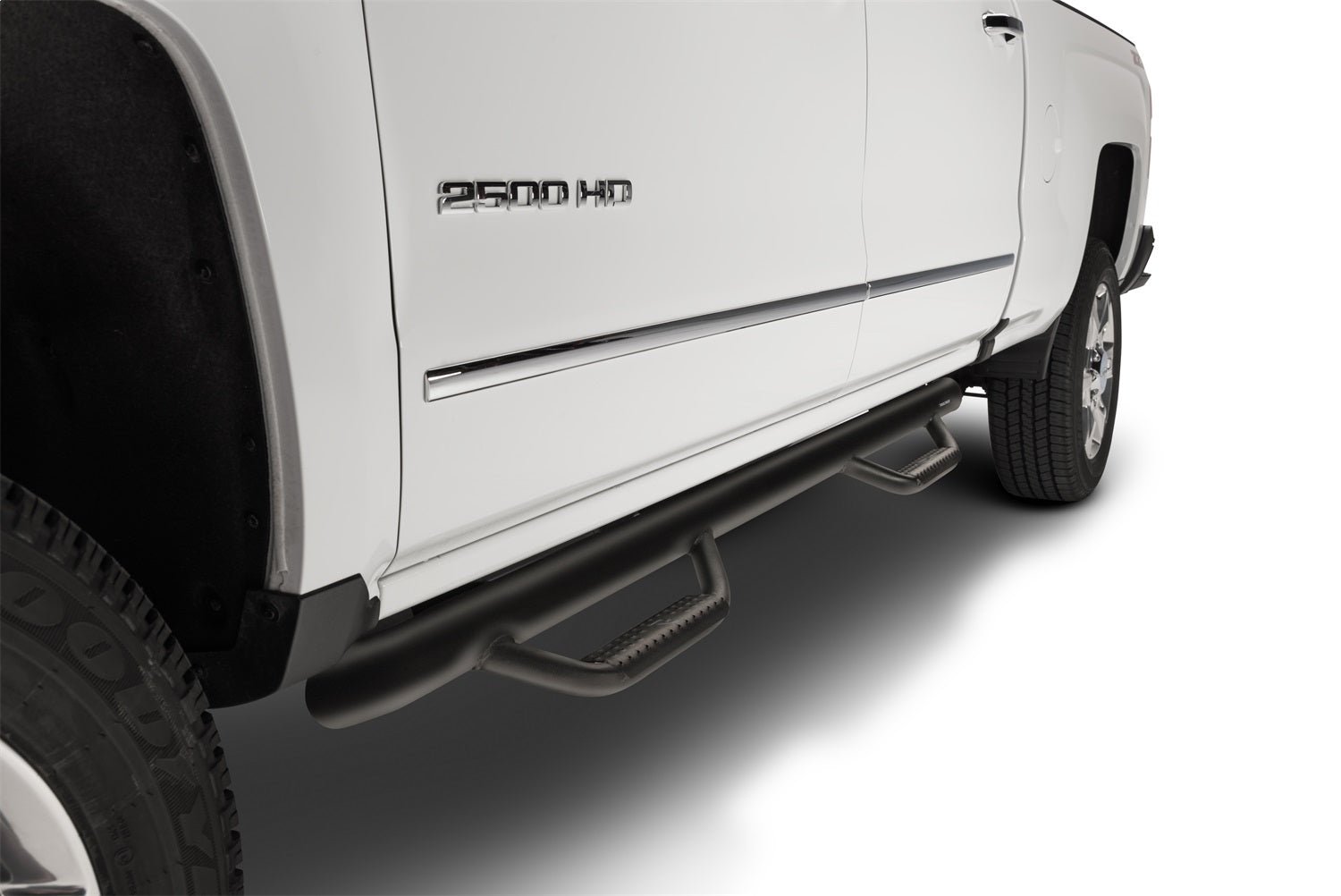 Nerf Step Bar - Wheel-to-Wheel with Bed Access (3 Steps per Side) - 3 in. Main Tube Diameter - 2001-2006 (2007 Classic) Chevy Silverado/GMC Sierra 8' Bed Crew Cab - Textured Black - Special Order