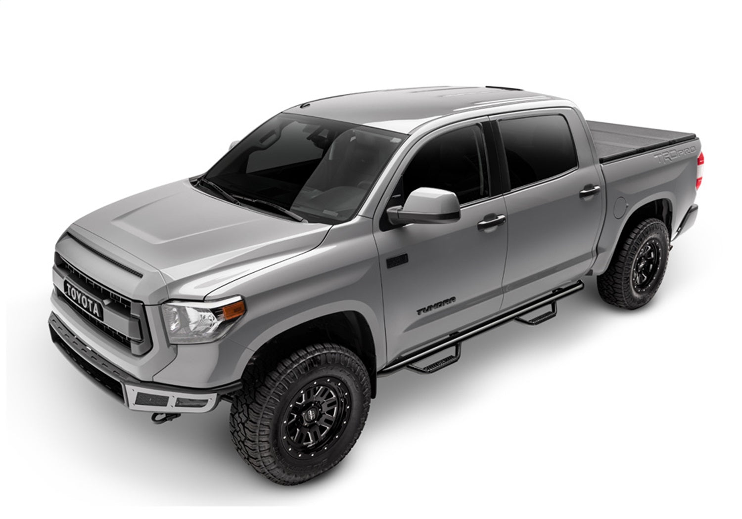 One of N-FAB's most popular styles is the Wheel to Wheel Nerf-Step. Utilizing N-FAB's patented hoop step design and innovative mounting system, N-FAB Wheel to Wheel Nerf Steps work on vehicles with and without body lift kits, with no modifications to brackets or bars. All N-FAB Wheel to Wheel Nerf Steps are built using .084 wall steel tubing and offer an industry high load rating of 465 pounds. All N-FAB Wheel to Wheel Nerf Steps are constructed as one-piece assemblies to provide maximum strength and durability not found in modular designs. Wheel to Wheel Nerf-Steps are designed and built specifically for each application, and mount high and tight to the vehicle cab for a clean factory look.