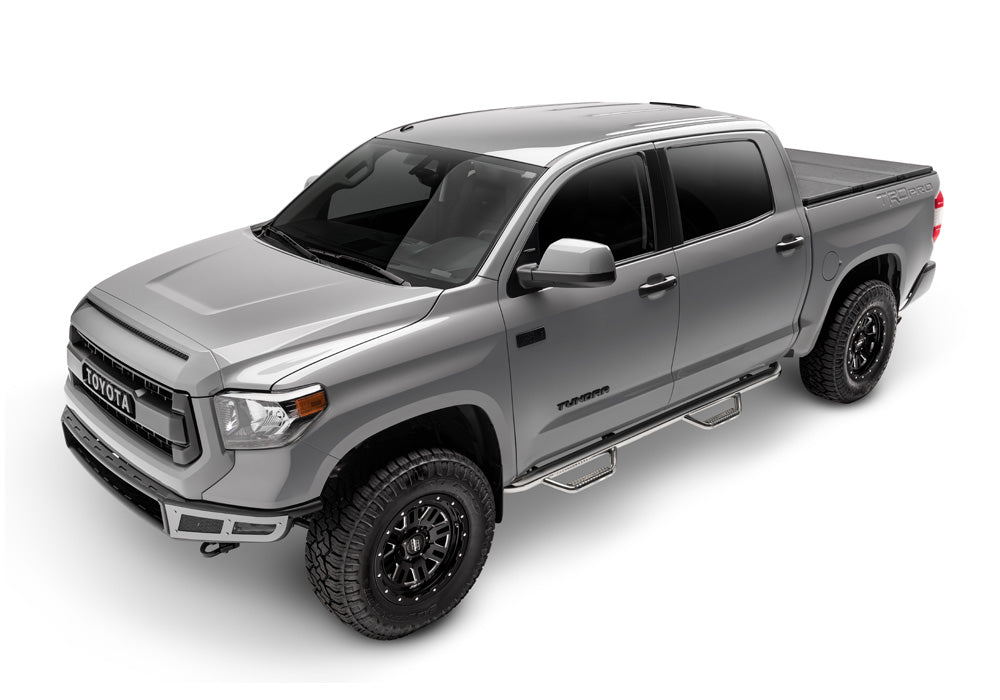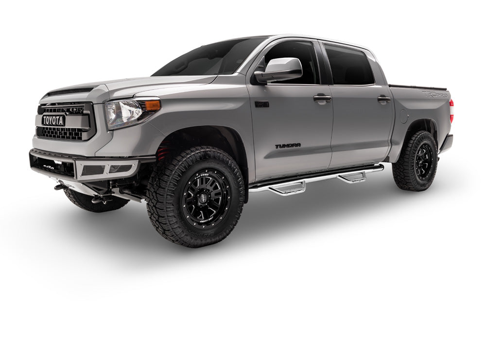 One of N-FAB's most popular styles is the Wheel to Wheel Nerf-Step. Utilizing N-FAB's patented hoop step design and innovative mounting system, N-FAB Wheel to Wheel Nerf Steps work on vehicles with and without body lift kits, with no modifications to brackets or bars. All N-FAB Wheel to Wheel Nerf Steps are built using .084 wall steel tubing and offer an industry high load rating of 465 pounds. All N-FAB Wheel to Wheel Nerf Steps are constructed as one-piece assemblies to provide maximum strength and durability not found in modular designs. Wheel to Wheel Nerf-Steps are designed and built specifically for each application, and mount high and tight to the vehicle cab for a clean factory look.