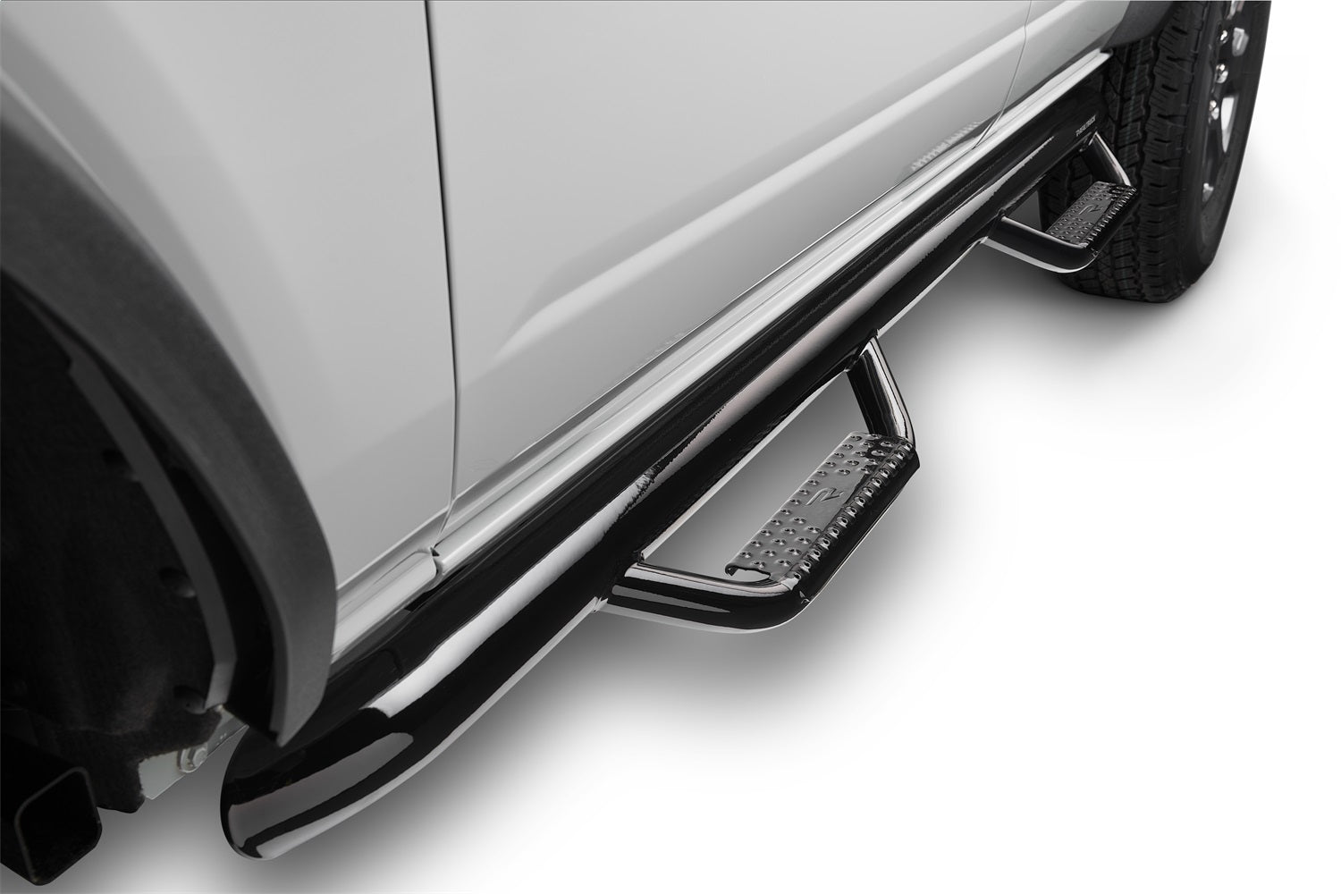 Built with today's work truck in mind, N-FAB offers its patented hoop step design and innovative mounting system in a Cab Length configuration. Designed with classic N-FAB styling, Cab Length Nerf Steps are ideal for flat bed trucks, stake bed trucks, vehicles with campers, and even trucks with side exhaust forward of the rear wheels. Manufactured from .084 wall tubular steel, Cab Length Nerf Steps provide all of the strength and durability for which N-FAB is known. All Nerf Steps have a 5 year Finish and Lifetime Workmanship Warranty.