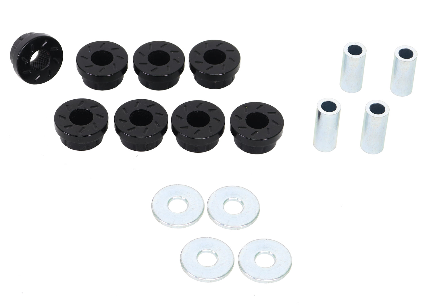 - Kit Contains: 8 Bushings, 4 Tubes, 4 Washers, Grease, Install Guide