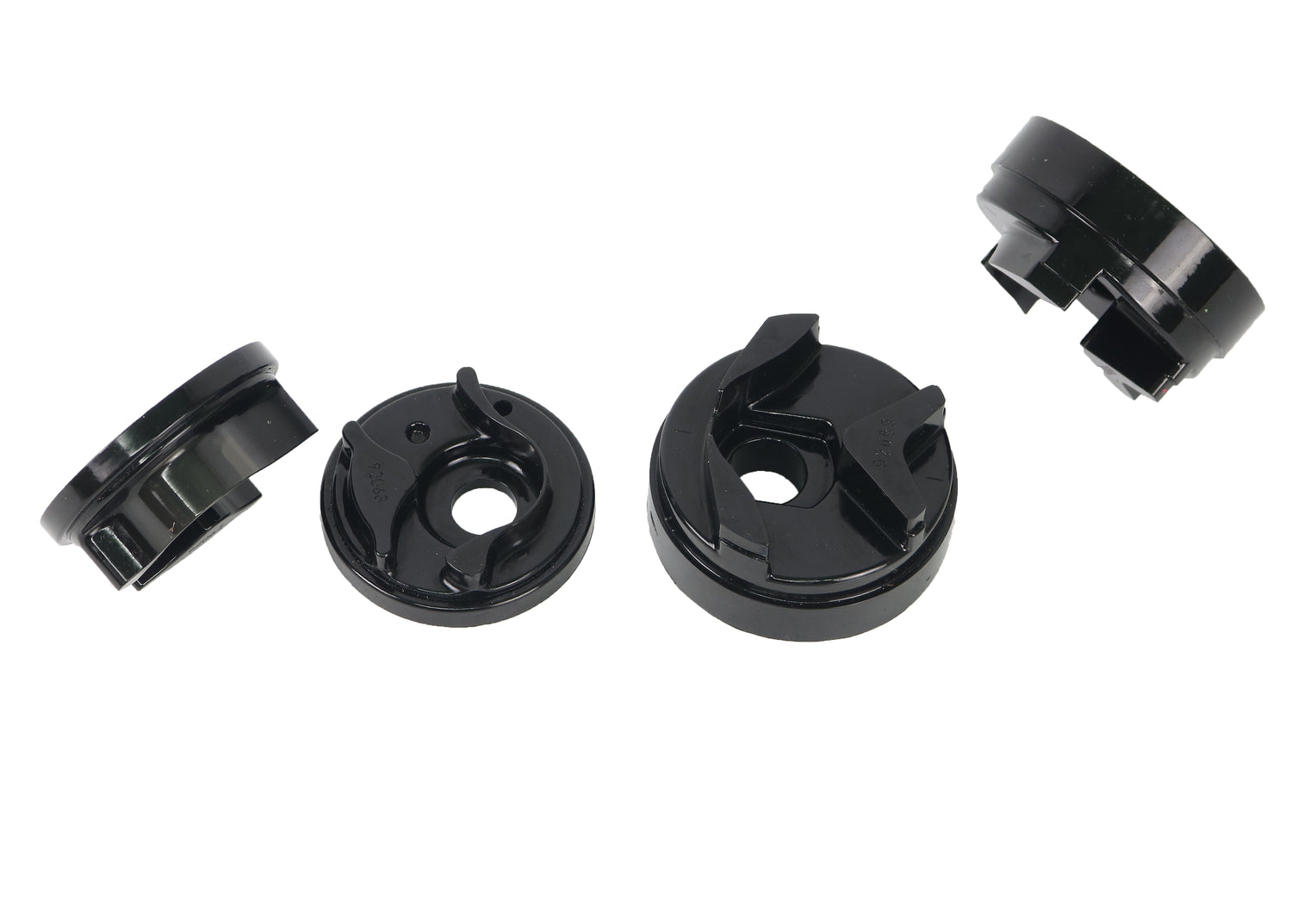 Soft factory bushings whilst they do a good job of not transmitting engine vibration, they do create vague and unresponsiveness in the vehicles drive train. Under hard acceleration, the engine and transmission rotates, Nolathane engine mount bushings work in conjunction with the OE rubber bushing giving your car better throttle response as well as more crisp and defined gear shifts.