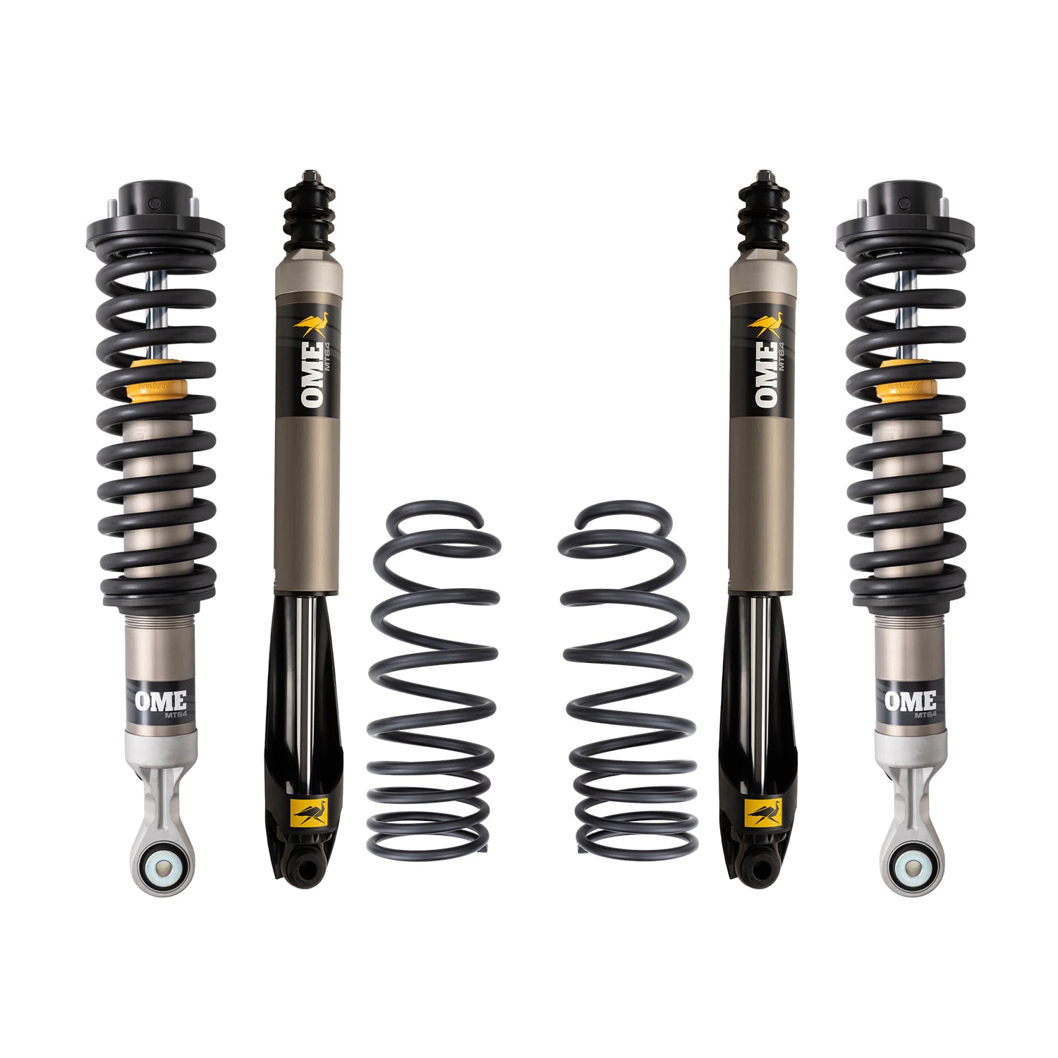 Old Man Emu offers a range of tuned and matched integrated suspension kits to ensure the right suspension is selected for how the vehicle is outfitted and the conditions it will encounter. Old Man Emu suspension systems are designed to enhance ride quality, ride control, load-carrying capacity, and ride height. When building an off-road vehicle, it's best to notate the heavy parts that you plan to add. Heavy components will slowly begin to compress your suspension which results in vehicle sag. Choosing an Old Man Emu integrated suspension kit will avoid sag and ride discomfort as our engineers have tuned and matched suspension components for an range of different weights. This suspension lift kit comes with Old Man Emu MT64 shocks. The MT64 shocks are engineered to handle every challenge, from demanding overlanding trips to the daily commute and every custom build in between, the MT64's huge 2.8in aluminum body and vehicle-specific damping ensure optimal performance across any terrain. This suspension lift kit is tuned and matched for the Toyota Tacoma to provide 3in of lift in the front, with a weight of 220-330lbs and provide 2in of lift in the rear with a weight of 0lb.
