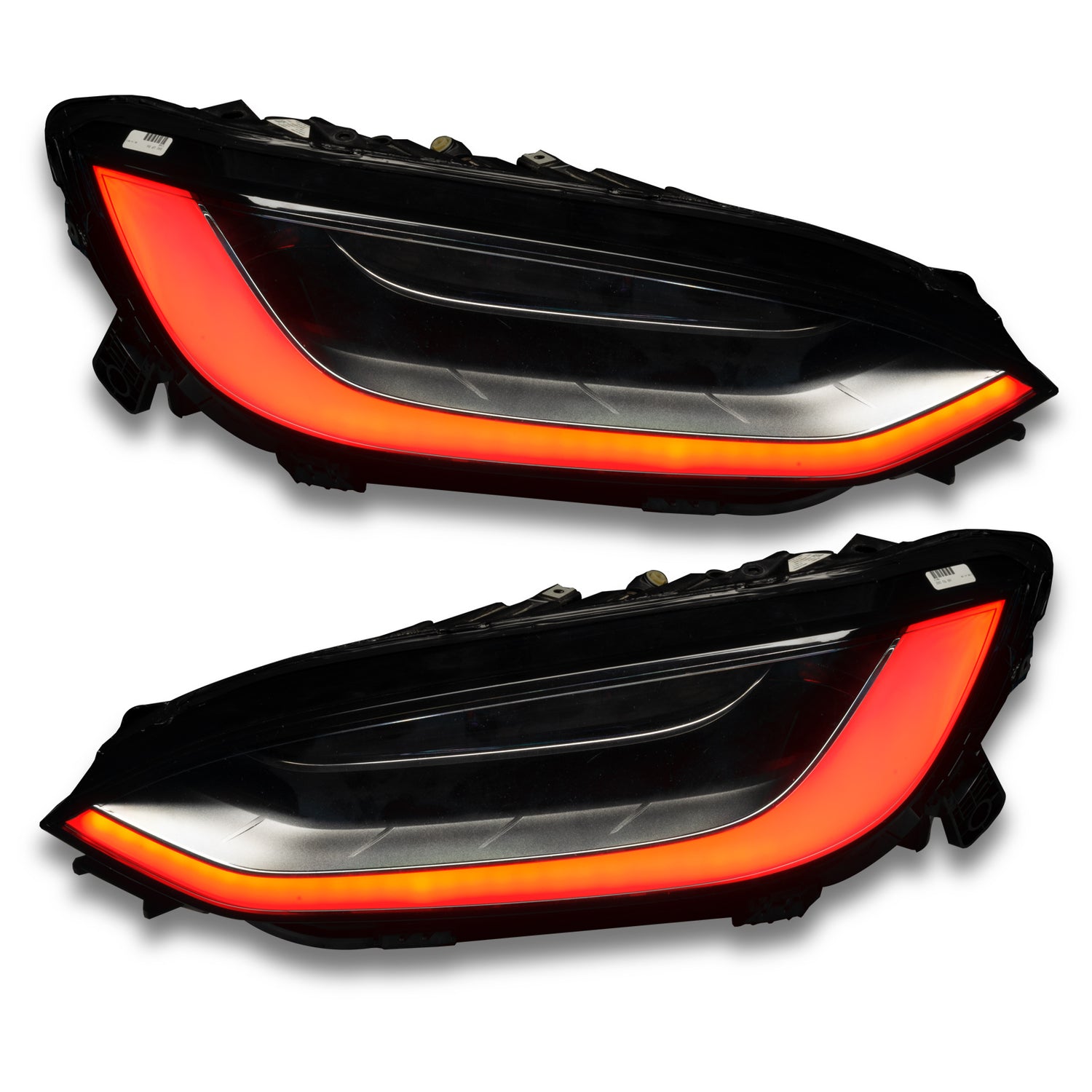 Customize your headlights and fog lights to the max with dynamic styling! The ORACLE Lighting Dynamic ColorSHIFT(tm) Headlight and Fog Light DRL Upgrade Kit for the 2016-2021 Tesla Model X features our Dynamic ColorSHIFT(tm) technology for brilliant chasing colors with the best quality LED components. The latest advancement in our expansive lighting modifications, our Dynamic ColorSHIFT(tm) technology allows the user to run multi-color moving patterns. Conveniently controlled through a free smartphone app, the system features over 200 pre-programmed moving patterns as well as static color control and white mode for normal street driving. In addition to the pre-programmed features, the user can also create custom designs through pixel editing in the app. These vividly eye-catching lighting effects are sure to wow any car enthusiast, and the chasing RGB DRLs are made stress-free by our plug-and-play wiring. Connect the ring terminals to the + and - battery terminals, then control your lights with the smartphone app from the included Dynamic ColorSHIFT(tm) controller. Using the latest lighting technology, our cutting-edge DRL kits for cars are a great way to personalize your ride with show-stopping looks and industry-leading performance. Stand out from the look-alikes with an ORACLE Lighting DRL kit!