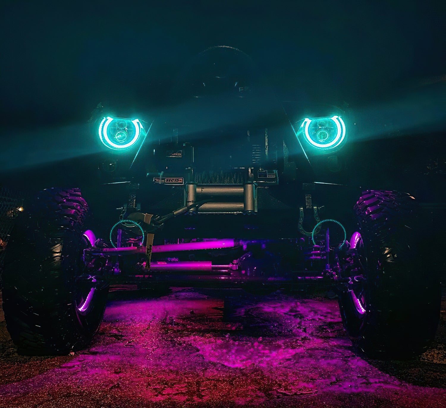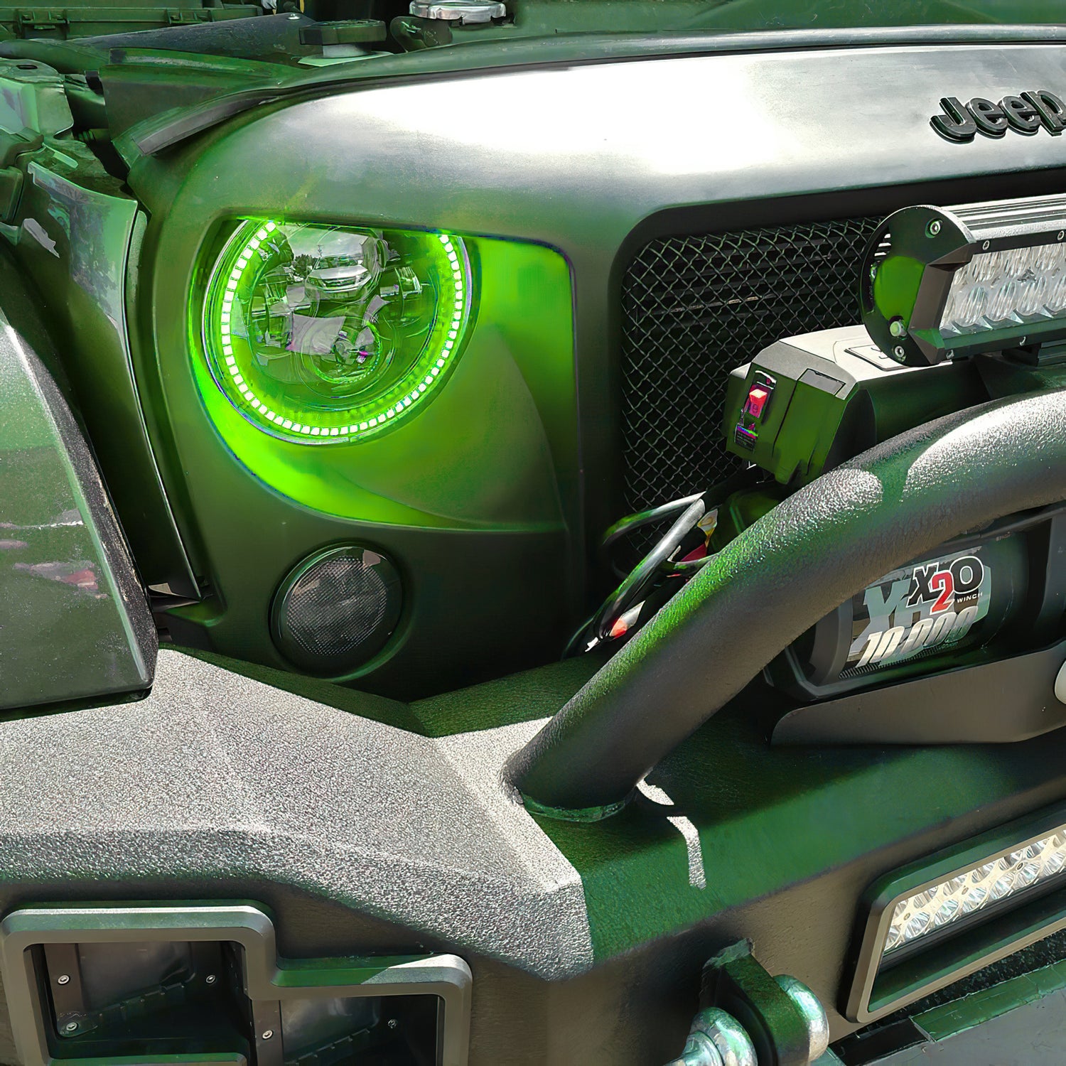 The Ultimate LED replacement headlight option for any vehicle with 7" Sealed Beam lamps. The rugged design is perfect for your Jeep Wrangler, Off-Road Vehicle, Buggies, or Classic Car/ Truck. Installation is very easy with the included H4 and H13 Plug and Play connectors. Each set comes in full color retail-ready packaging and a 2-Year free Replacement Warranty. You can even choose optional colored Halos for even more customization! Improvements in brightness and reliability by adding a constant current LED driver to the main circuit board inside of the lamp to control the halos. NEW! No need for Anti-Flicker Wiring Adapters- The new SMART Integrated Can-Bus system automatically adjusts- preventing flicker issues. Increased Reliability- By conditioning the power going into the LEDs this prevents degradation which can shorten the overall lifespan of the product. Wider Input Voltage Range- The new SMD Halos can operate on a very wide voltage range from 12V-24V so that voltage spike can not damage the LEDs. Brighter LED Halos- by moving the heat load of the resistors off the PCB we are able to increase the number of LEDs on the circuit board without thermal issues. LED chips upgraded from a Cree LED to a Phillips Luxeon ZES chip. They deliver a very high efficacy 130LM/W ratio while having lower thermal output.