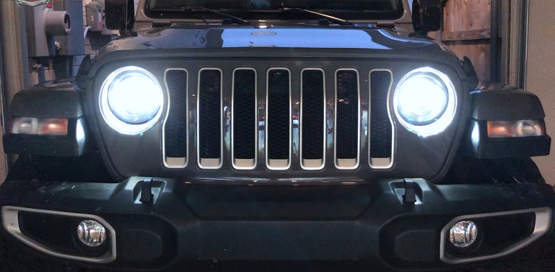 Headlight - 7 in OD - LED - DOT Approved - Black Bezel - Glass / Steel - Jeep Gladiator 2020-24 / Jeep Wrangler JL 2018-24 - Kit