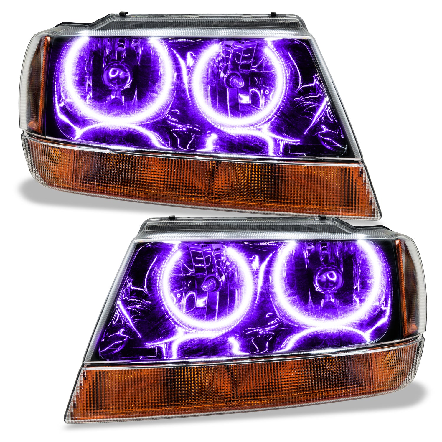 1999-2004 Jeep Grand Cherokee Pre-Assembled LED Halo Headlights (Black Housing)