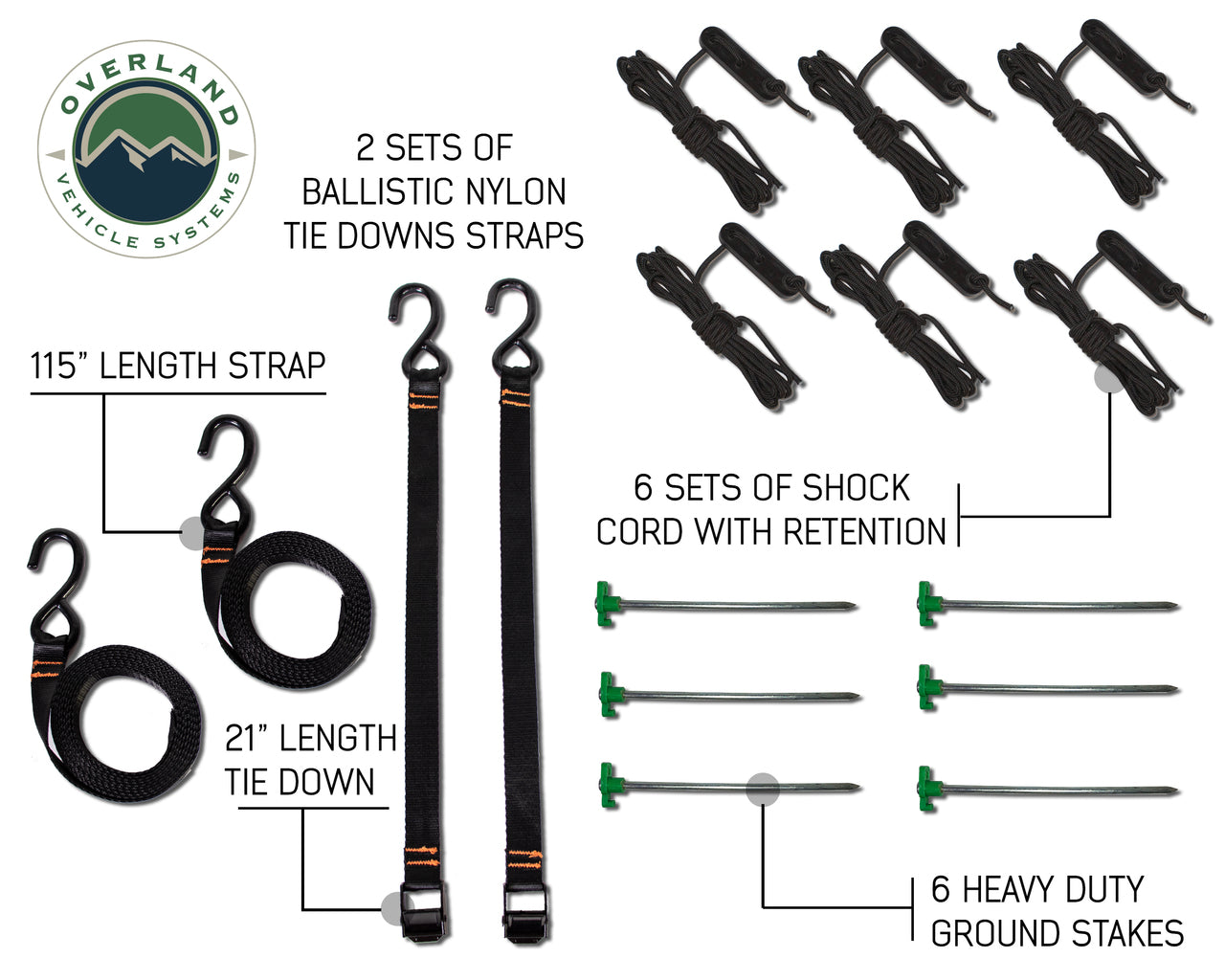 Included: QTY One of the Overland Vehicle Systems 270 Degree Awning, Bracket Kit, and 3 Meter Pole Kit