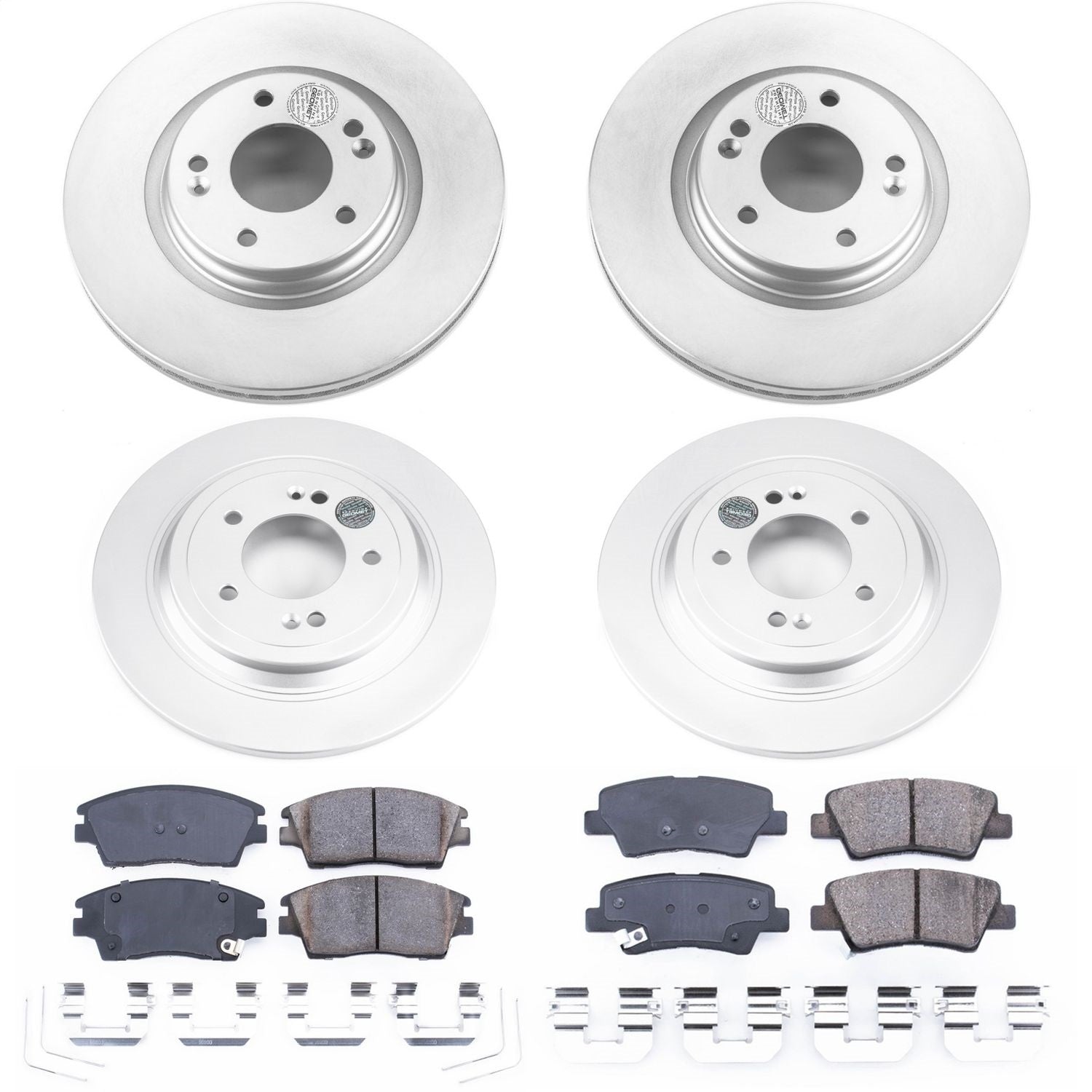 Power Stop - Front and Rear Genuine Geomet Coated Rotor and Low-Dust Ceramic Brake Pad Kit