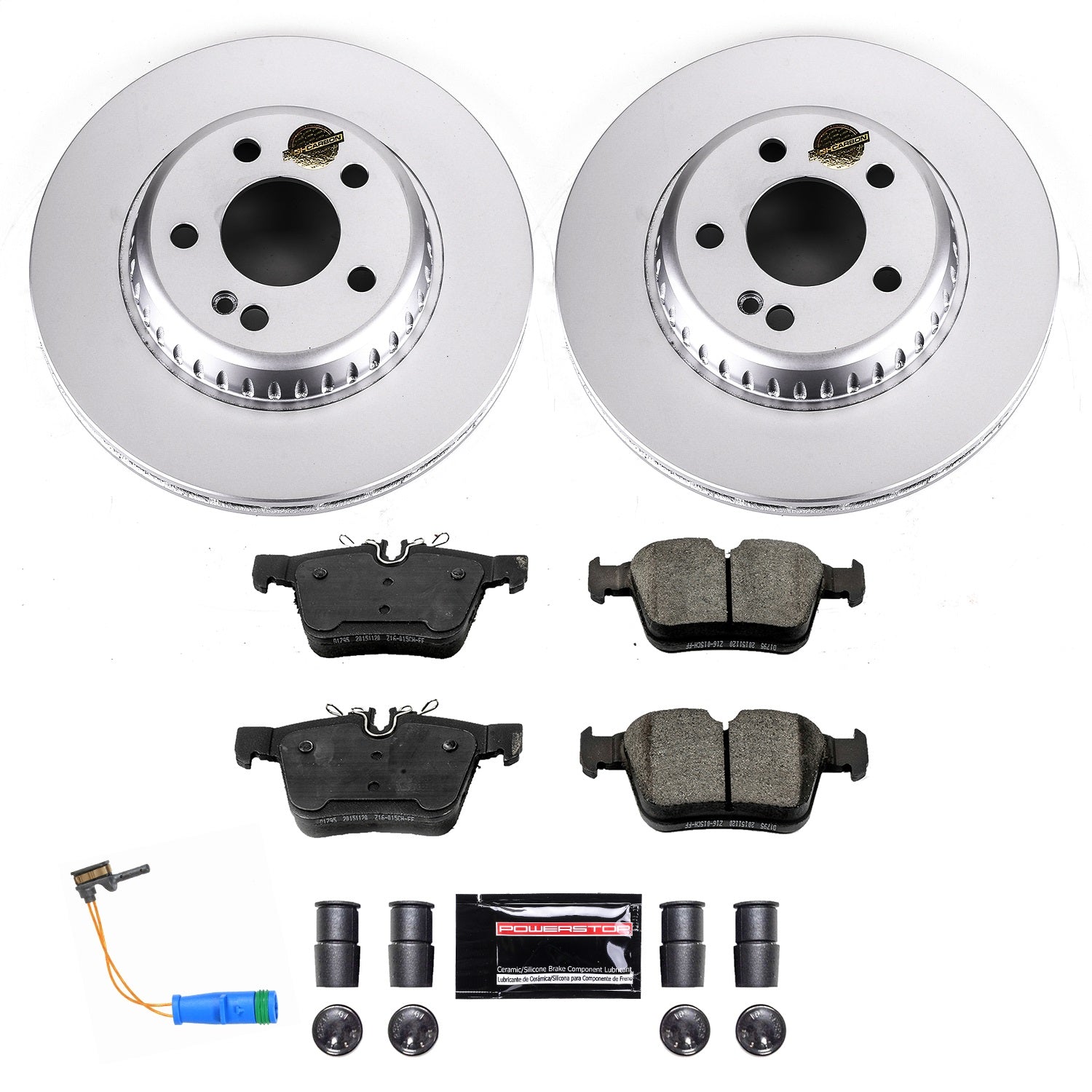 Z23 SPORT GEOMET COATED ROTOR KIT FOR EUROPEAN VEHICLES: GENUINE GEOMET FULLY COATED ROTORS, CARBON-FIBER CERAMIC PADS W/ HARDWARE, PAD SENSORS