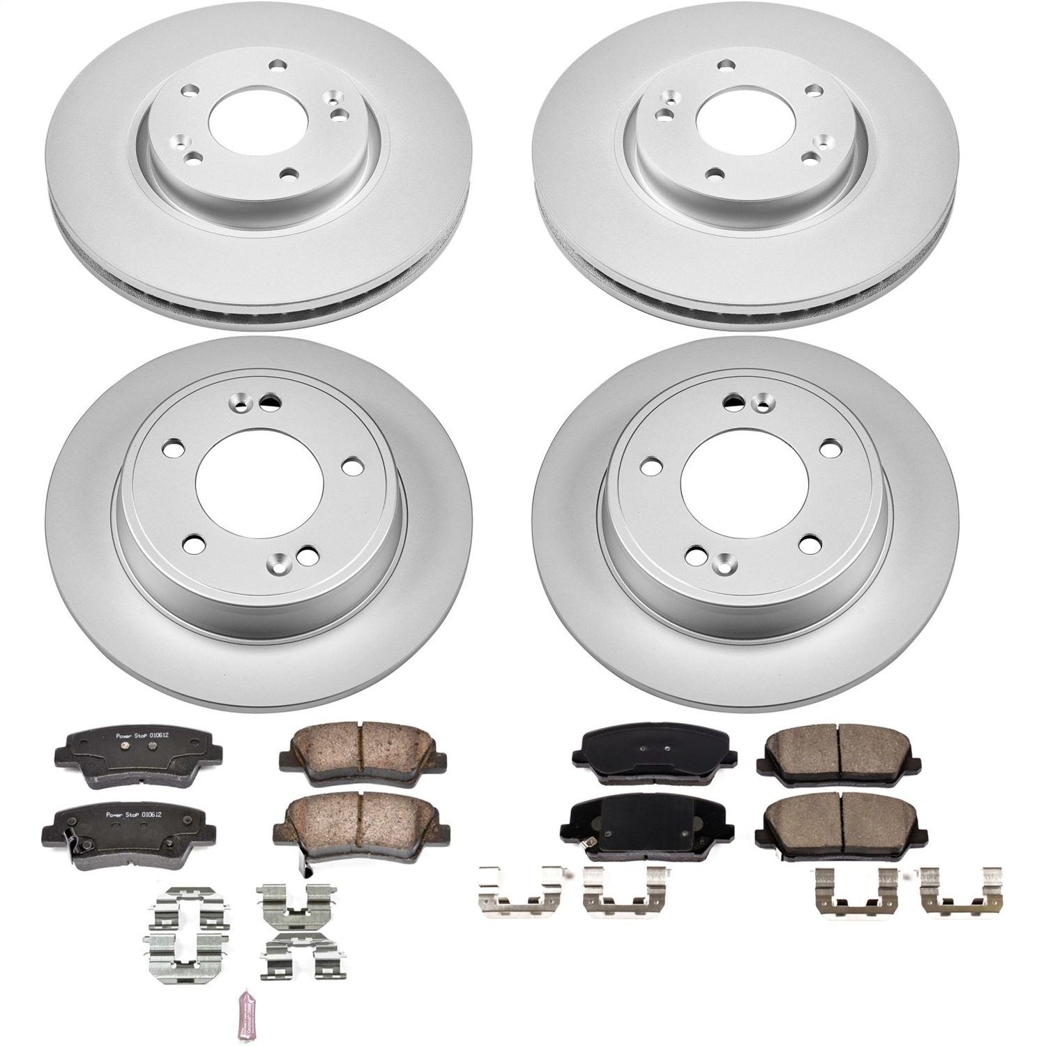 Power Stop - Front and Rear Genuine Geomet Coated Rotor and Low-Dust Ceramic Brake Pad Kit