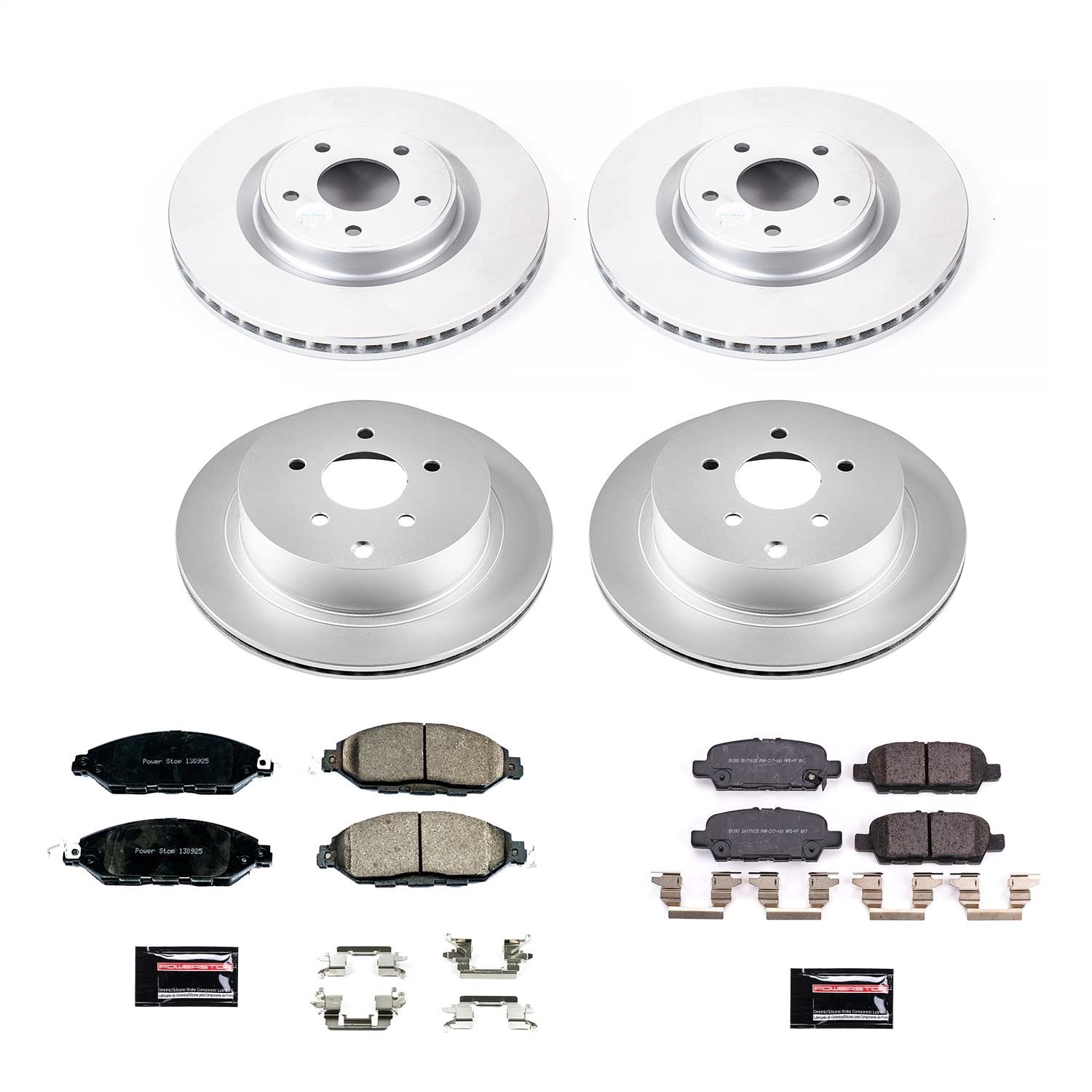 Power Stop - Front and Rear Genuine Geomet Coated Rotor and Low-Dust Ceramic Brake Pad Kit